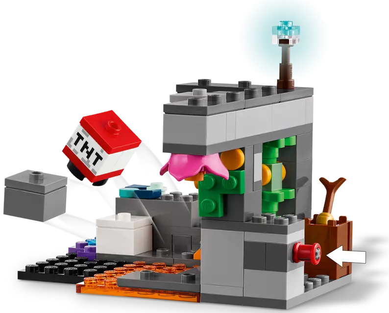 ➡️ Dzieci wykorzystają funkcję wybuchającego TNT i spadających głazów, by wydobywać diamenty w bujnej jaskini i walczyć z dużą figurką strażnika