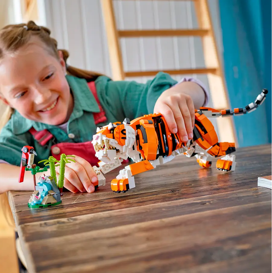 ✅Dziewięcioletni i starsi miłośnicy zwierząt będą się świetnie bawić, odgrywając ciekawe historie dzięki cudownemu zestawowi LEGO® Creator 3 w 1 Majestatyczny tygrys (31129).