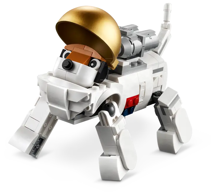 ✅Dzieci mogą zbudować trzy różne kosmiczne modele: ruchomego astronautę, futurystycznego kosmicznego psa z ruchomymi łapami i ogonem, lub kosmiczny odrzutowiec z miejscem na minifigurkę pilota (brak w zestawie).