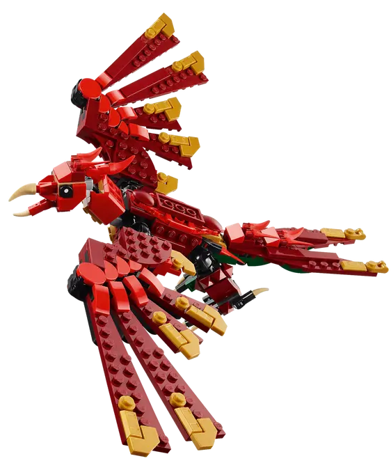 ✅Fani mitycznych zwierząt mogą z tego samego zestawu klocków zbudować trzy różne modele: ruchomą figurkę smoka, węża morskiego lub feniksa.