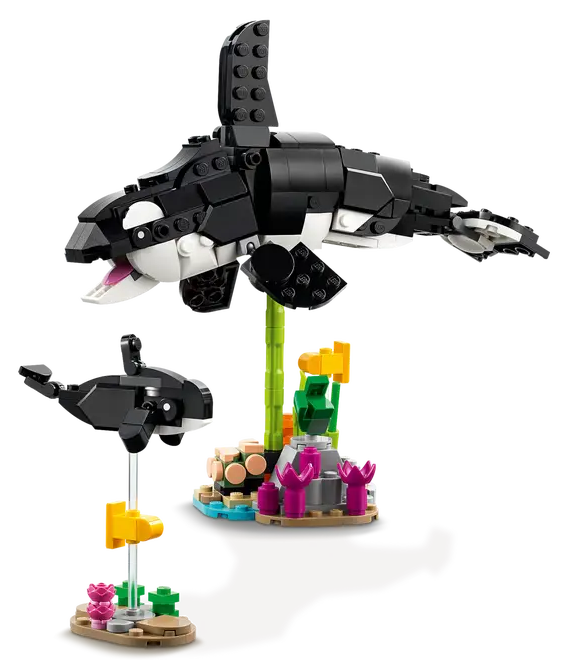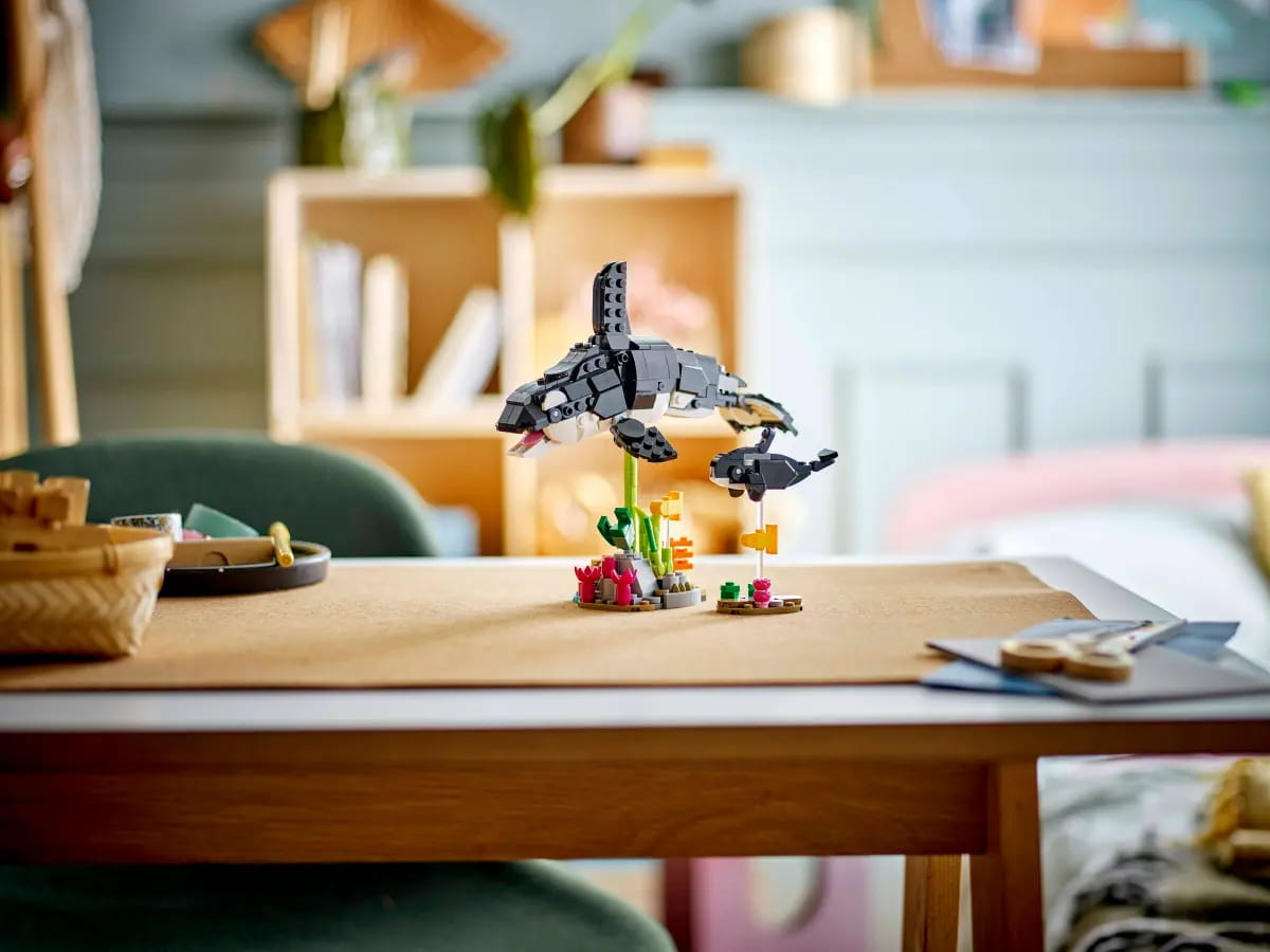 ✅ Po ukończonej zabawie można umieścić figurki zwierząt LEGO® na półce lub stoliku nocnym. Rodzinę orek można ustawić na dwóch przezroczystych podstawkach