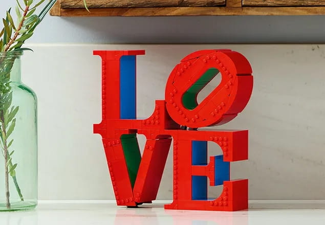 ✅Rzeźba LOVE z klocków LEGO® stanowi imponującą ozdobę.
