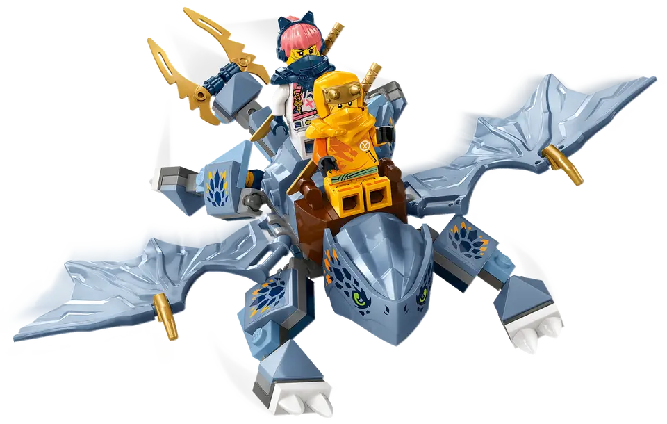 ✅Zestaw zawiera model smoczątka Riyu z ruchomymi skrzydłami i nogami, ruchomym ogonem i siodłem, dzięki czemu minifigurki mogą jeździć na jego grzbiecie.
