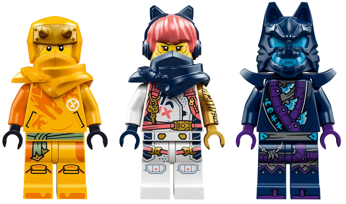 ✅W tym zestawie znajdują się trzy minifigurki: Arin uzbrojony w hak do wspinaczki i miecz, Sora z kataną oraz nikczemny wojownik Wilczej Maski z mieczem.