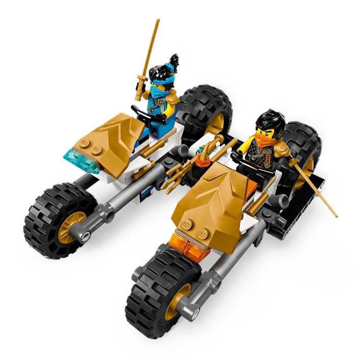 ✅Mają do wyboru jeden duży pojazd NINJAGO lub cztery mniejsze pojazdy: szybowiec Sory z dwoma miotaczami klocków, samochód terenowy Lloyda oraz motocykle Cole’a i Nyi.