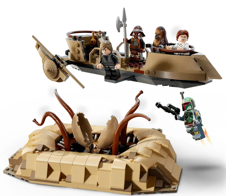 ✅Dźwignie umożliwiają poruszanie mackami sarlacca, a otwierająca się paszcza pomieści minifigurkę LEGO®