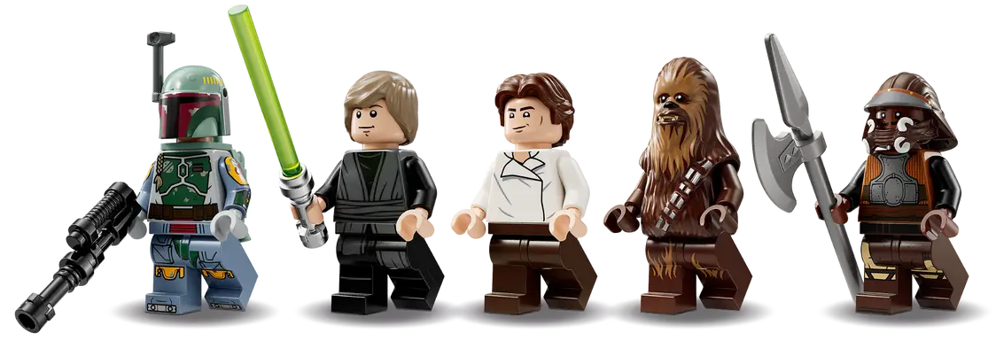 ✅Zawiera sześć minifigurek LEGO, w tym Luke’a Skywalkera, Hana Solo, Chewbaccę, Lando Calrissiana i Bobę Fetta, a także szczegółowe akcesoria.
