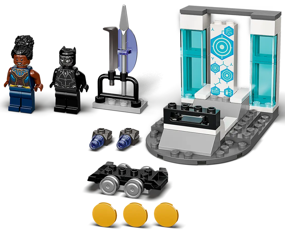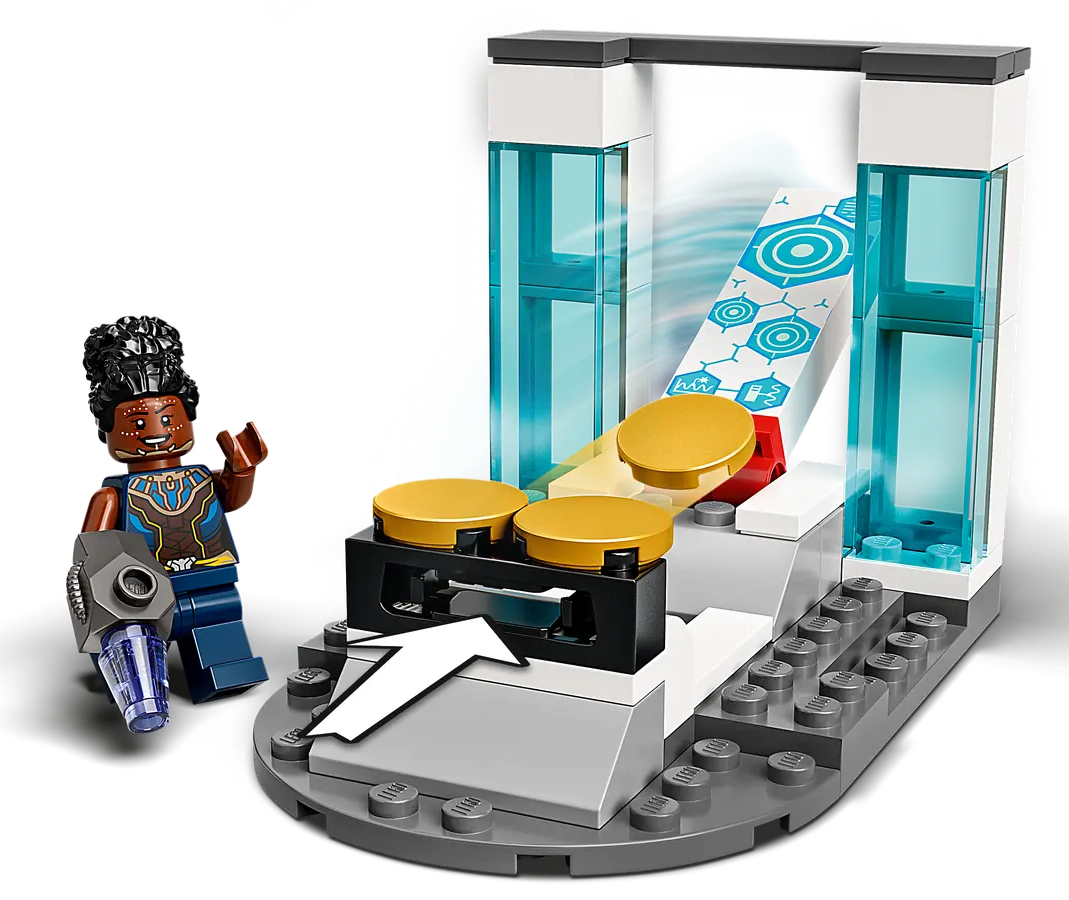 ➡️W komplecie minifigurki Shuri i Czarnej Pantery, wyrzutnia dysków, akcesoria i klocek startowy, który przyspiesza budowanie, dzięki czemu zostaje więcej czasu na zabawę