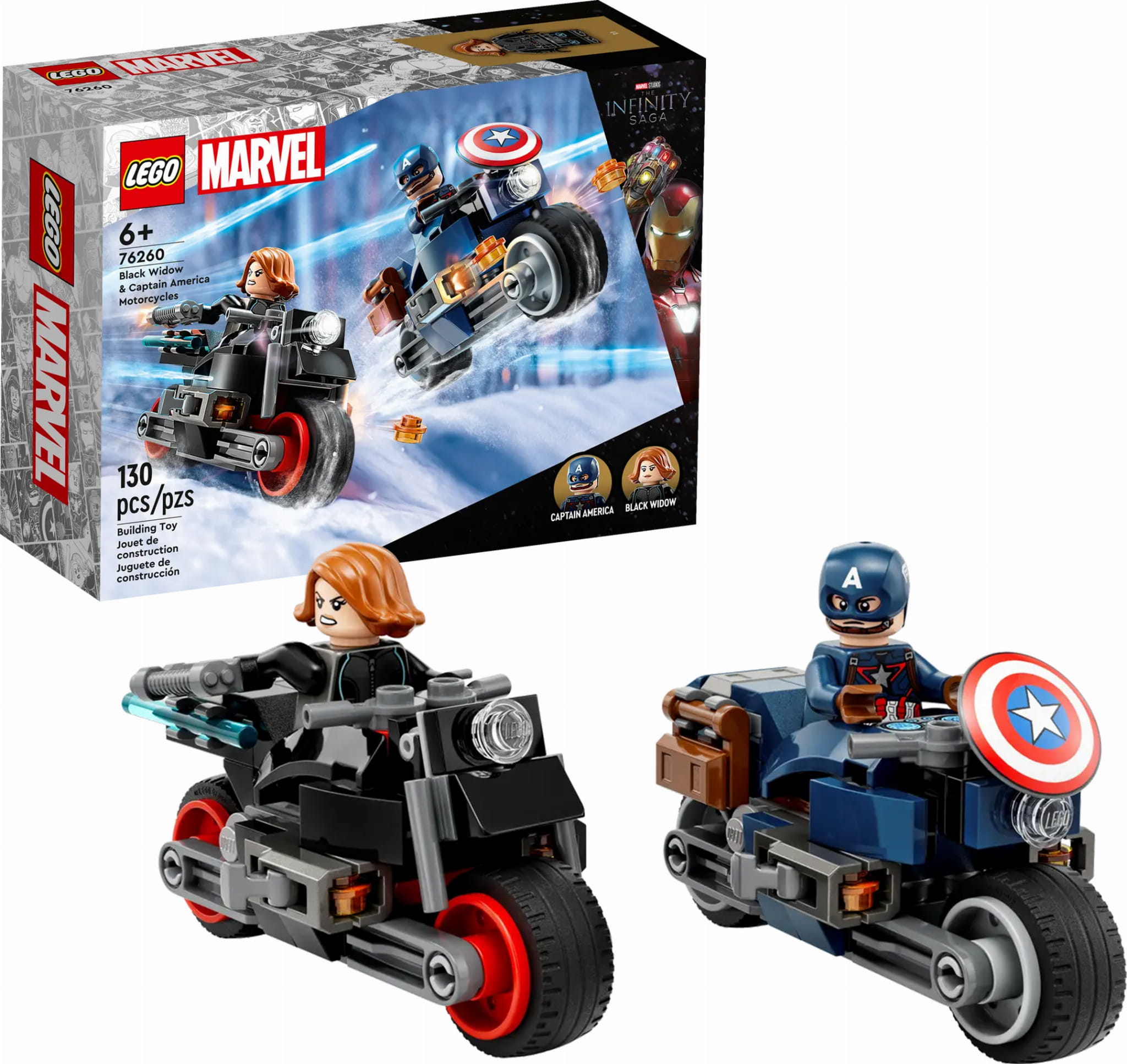 ✅Ożyw kultową akcję filmową z zestawem LEGO® Marvel Motocykle Czarnej Wdowy i Kapitana Ameryki (76260).
