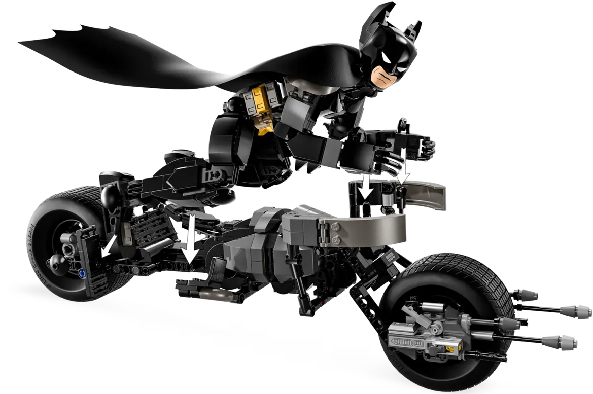 ➡️Ruchome stawy ramion, rąk, bioder i nóg pozwalają dzieciom tworzyć atrakcyjne pozy z figurką LEGO® Batman™, motocyklem i wyrzutniami klocków