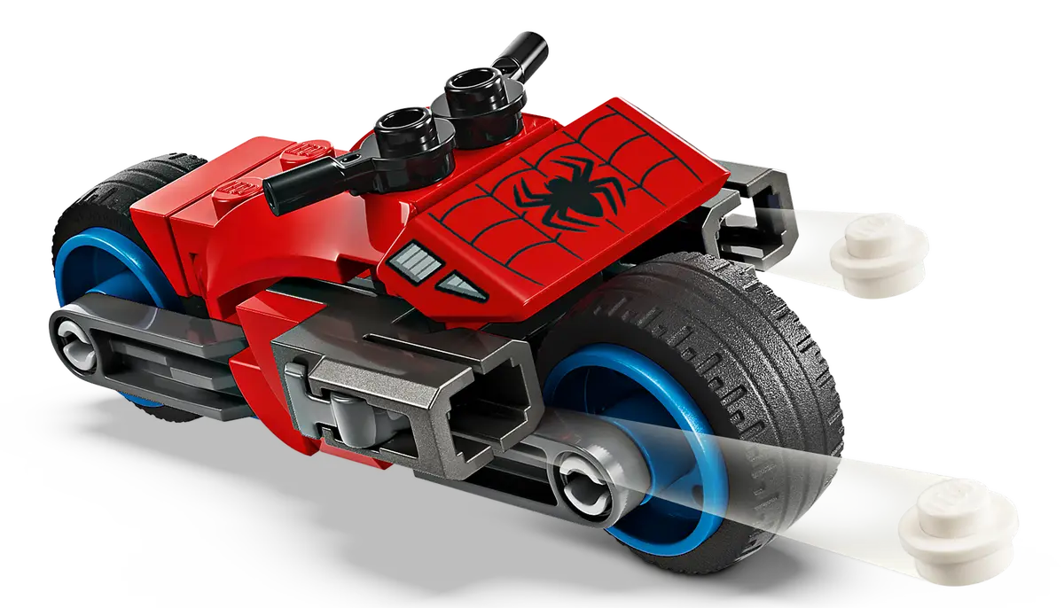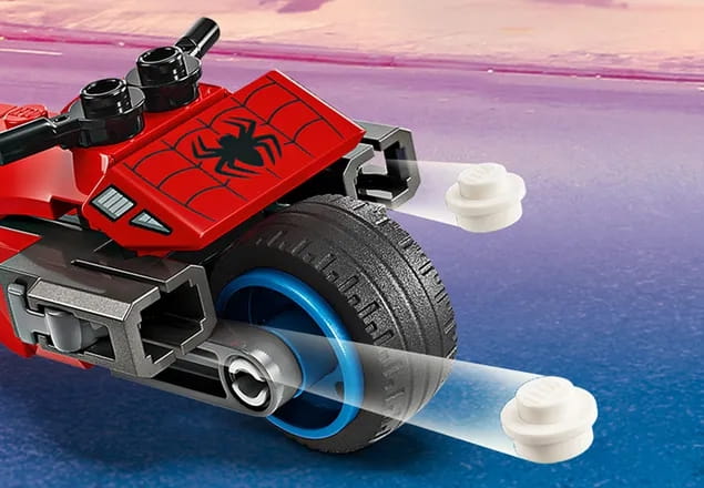 ✅Motocykl Spider-Mana pozwala strzelać z miotaczy klocków i sieci.