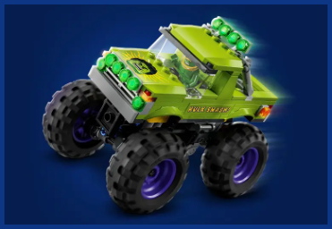 ➡️ Pojazd superbohatera ma fotel kierowcy z miejscem na minifigurkę Hulka i duże, obrotowe koła z amortyzowanym zawieszeniem