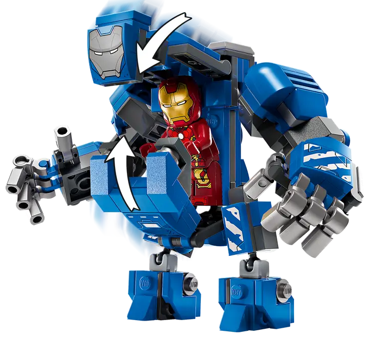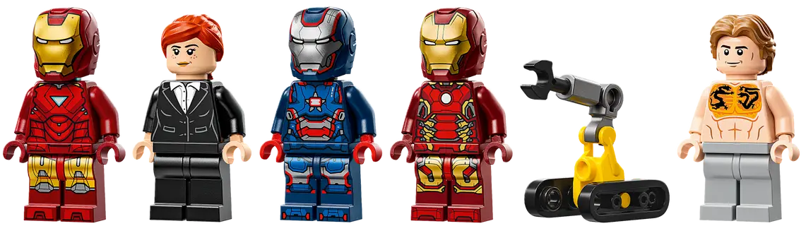 ✅ Całość uzupełniają minifigurki Pepper Potts i złoczyńcy Aldricha Killiana, robota Dum-E i dużego mecha Igora MK3 z ruchomymi ramionami i nogami oraz kokpitem z miejscem na minifigurkę.