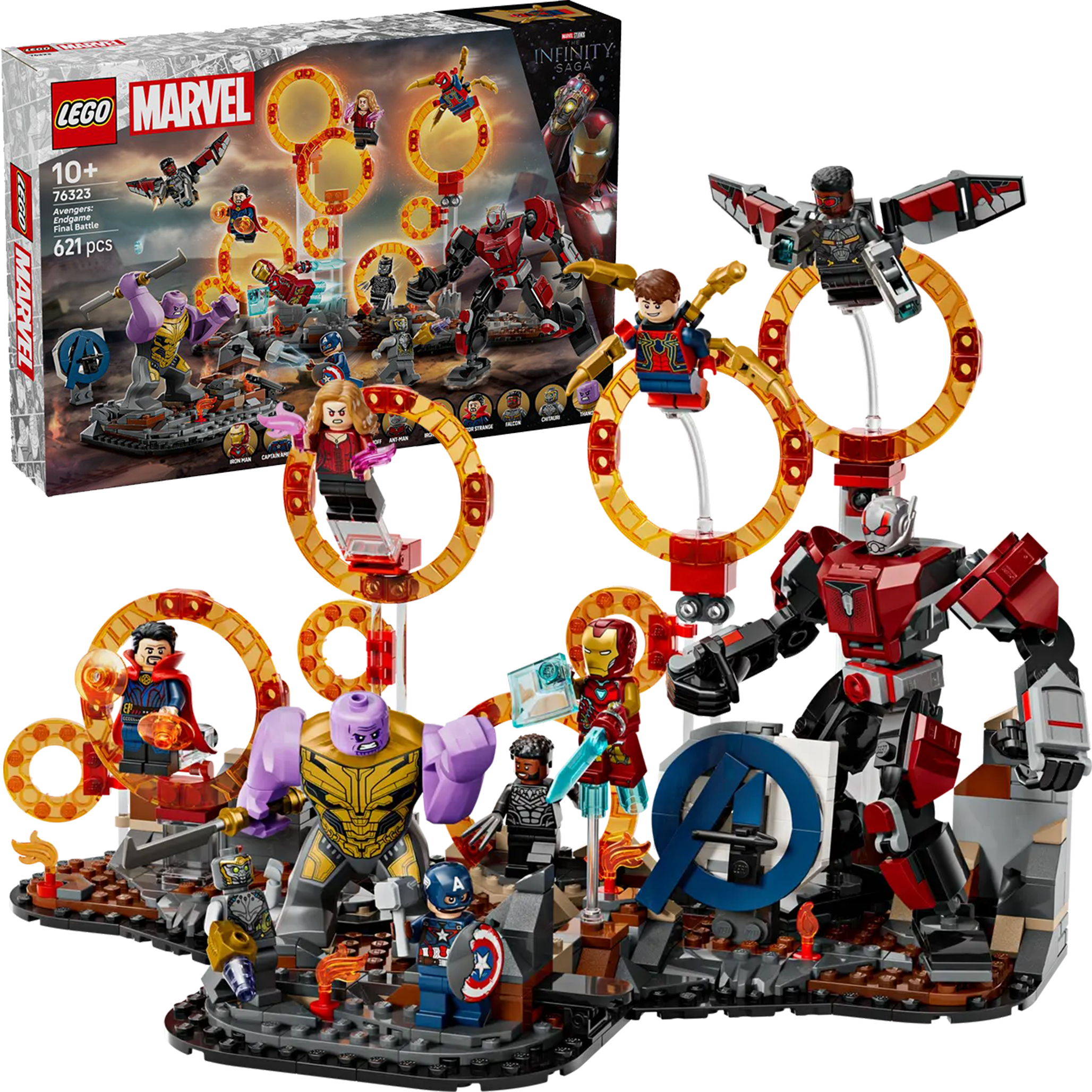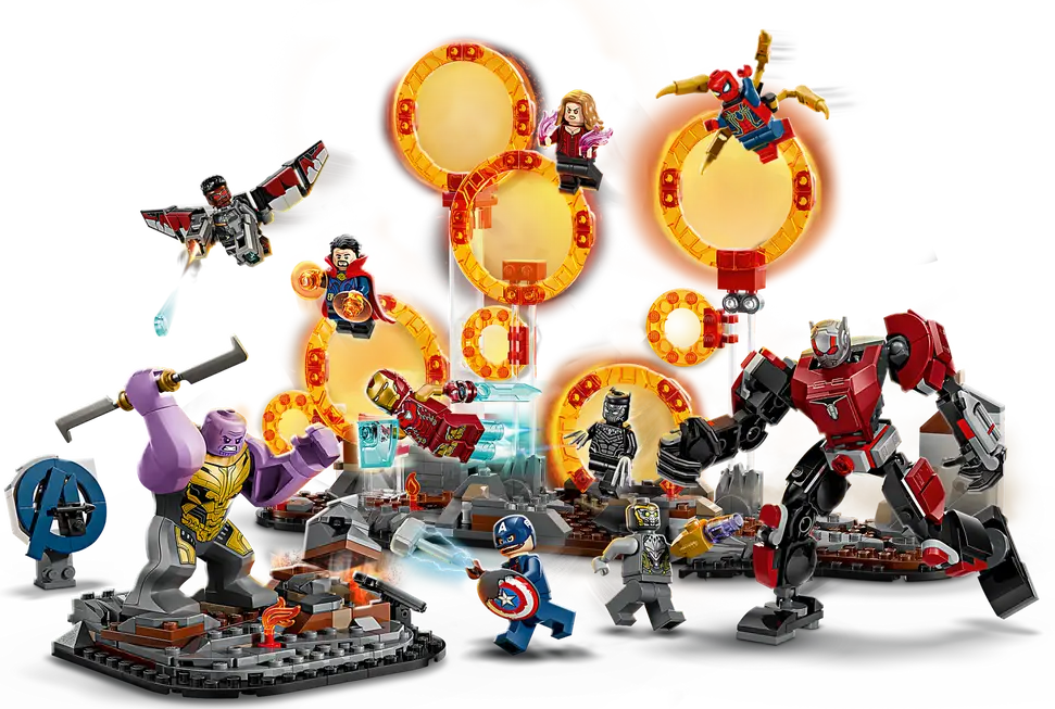 ✅ Przedstawiający epickie starcie z filmu Marvel Studios Avengers: Koniec gry zestaw zawiera między wymiarowe portale i dziewięć minifigurek: