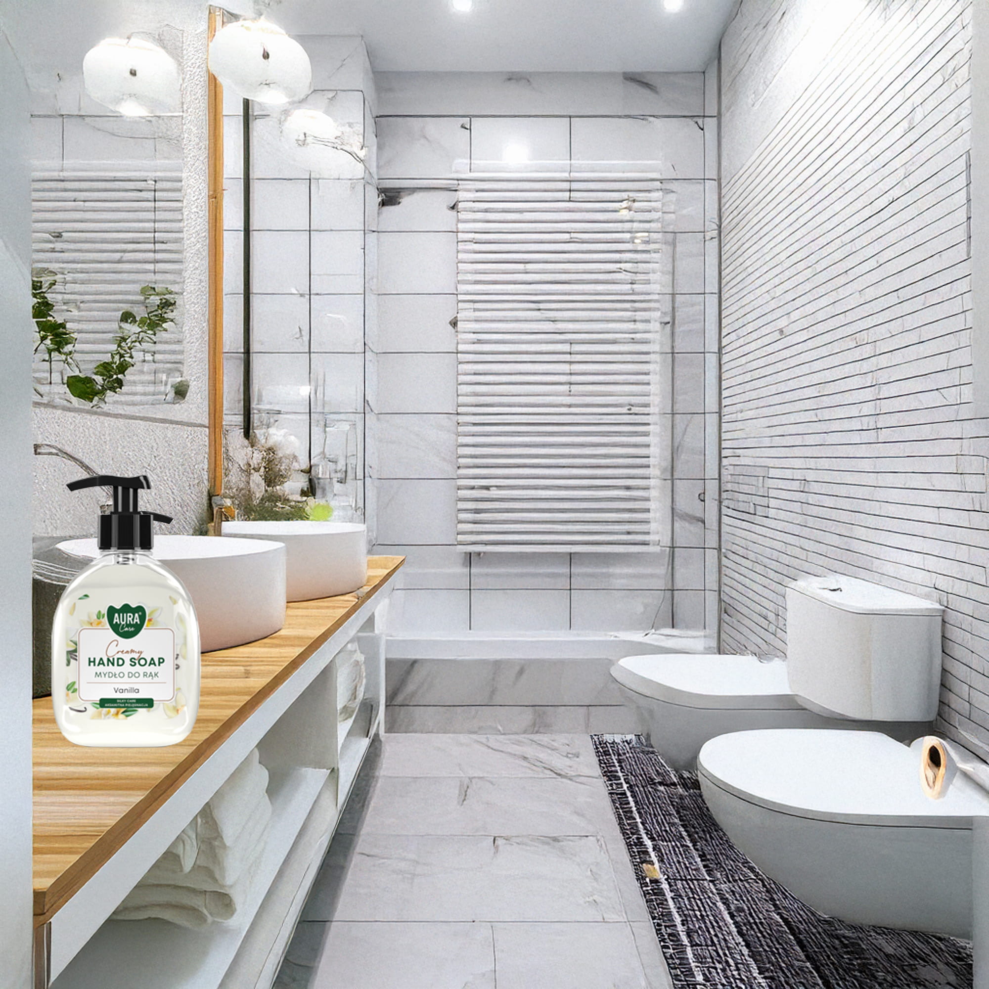 ✅ Zamień codzienne mycie rąk w chwilę prawdziwej przyjemności z AURA Care Kremowym Mydłem do Rąk o zapachu wanilii.