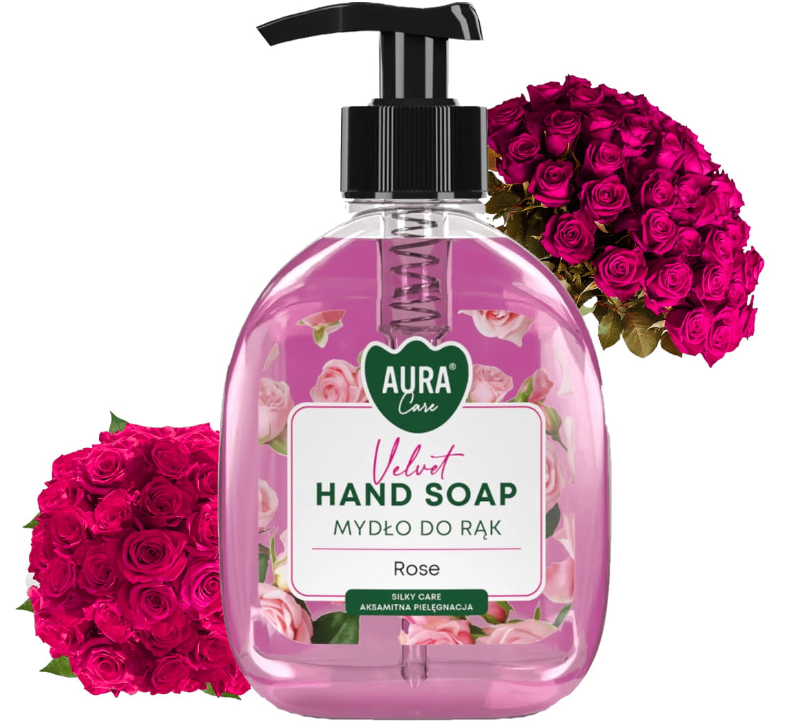 ⭐AURA Care Mydło Do Rąk Nawilżające Róża 300 ml Z Dozownikiem⭐