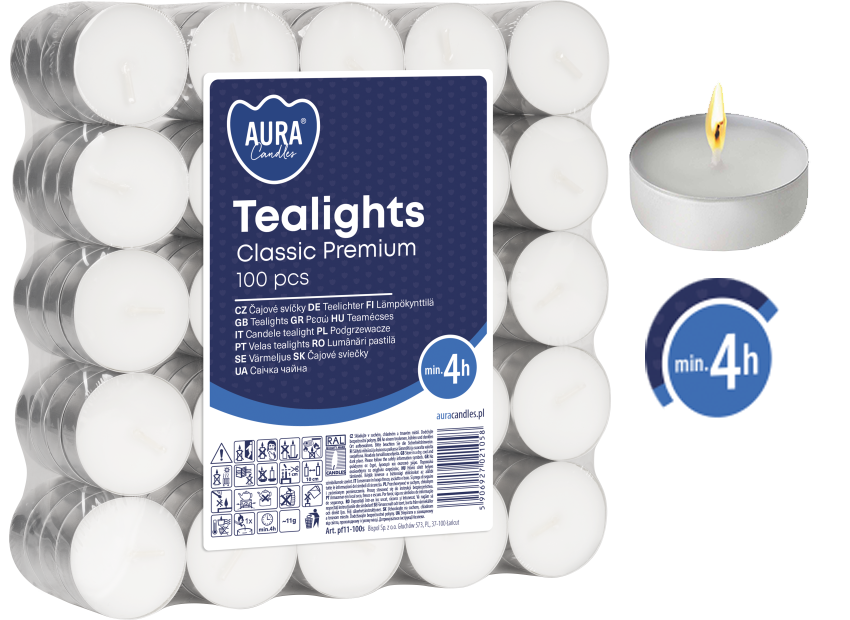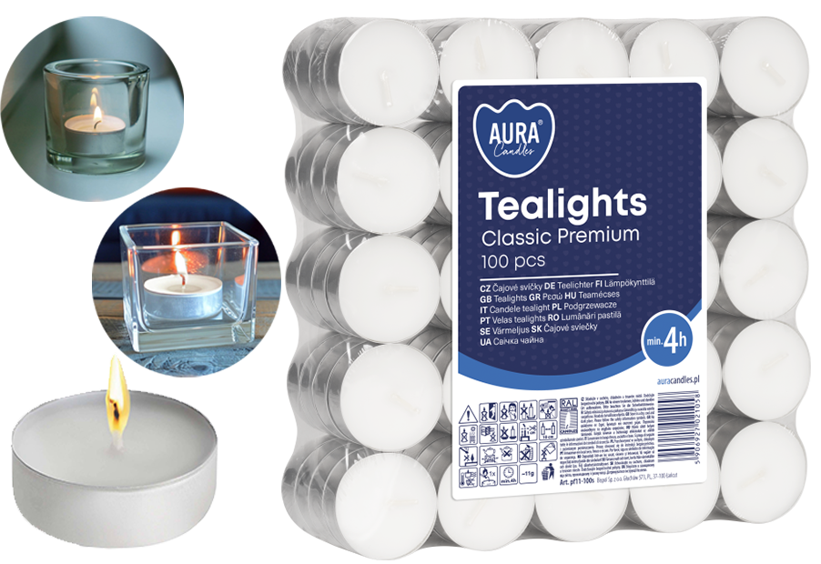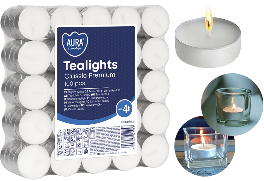 | Model | AURA Podgrzewacze Tealights Classic Premium 4h 100 szt. pf11-100s |