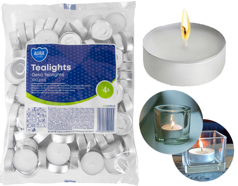 | Model | AURA Podgrzewacze Tealights Deko 4h 100 szt. p10-100 |