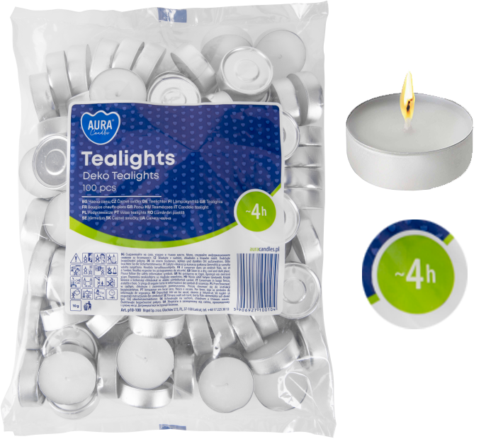 AURA Podgrzewacze Tealights Deko 4h 100 szt. p10-100
