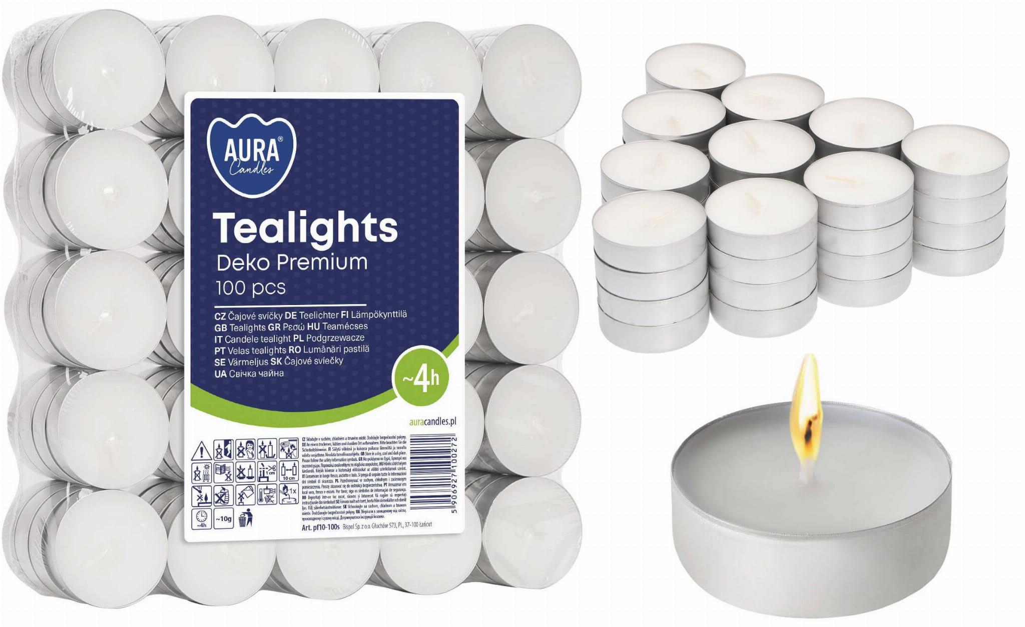 AURA Podgrzewacze Tealights Deko Premium 4h 100 szt. pf10-100s