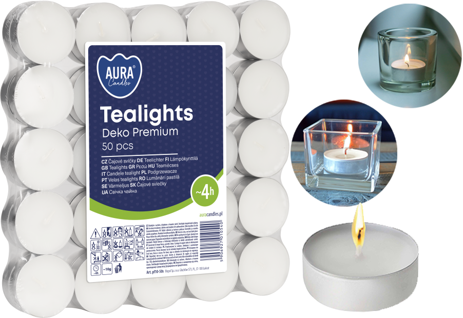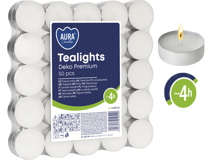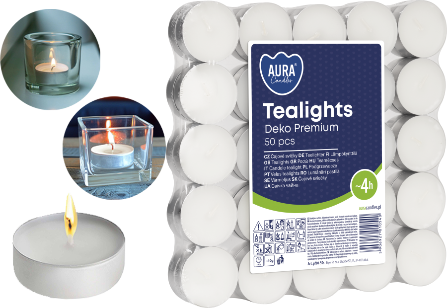 | Model | AURA Podgrzewacze Tealights Deko Premium 4h 50 szt. pf10-50s |