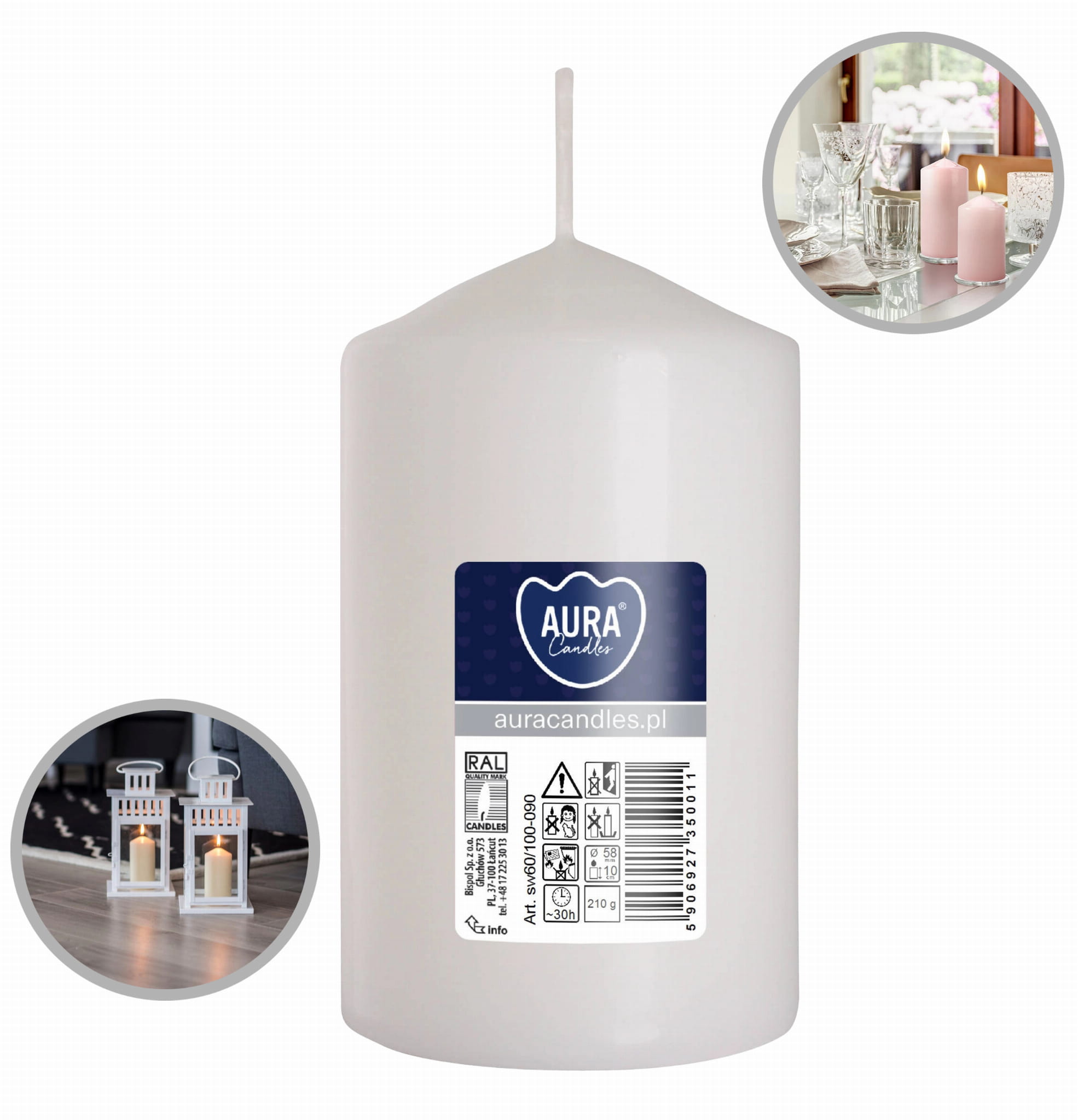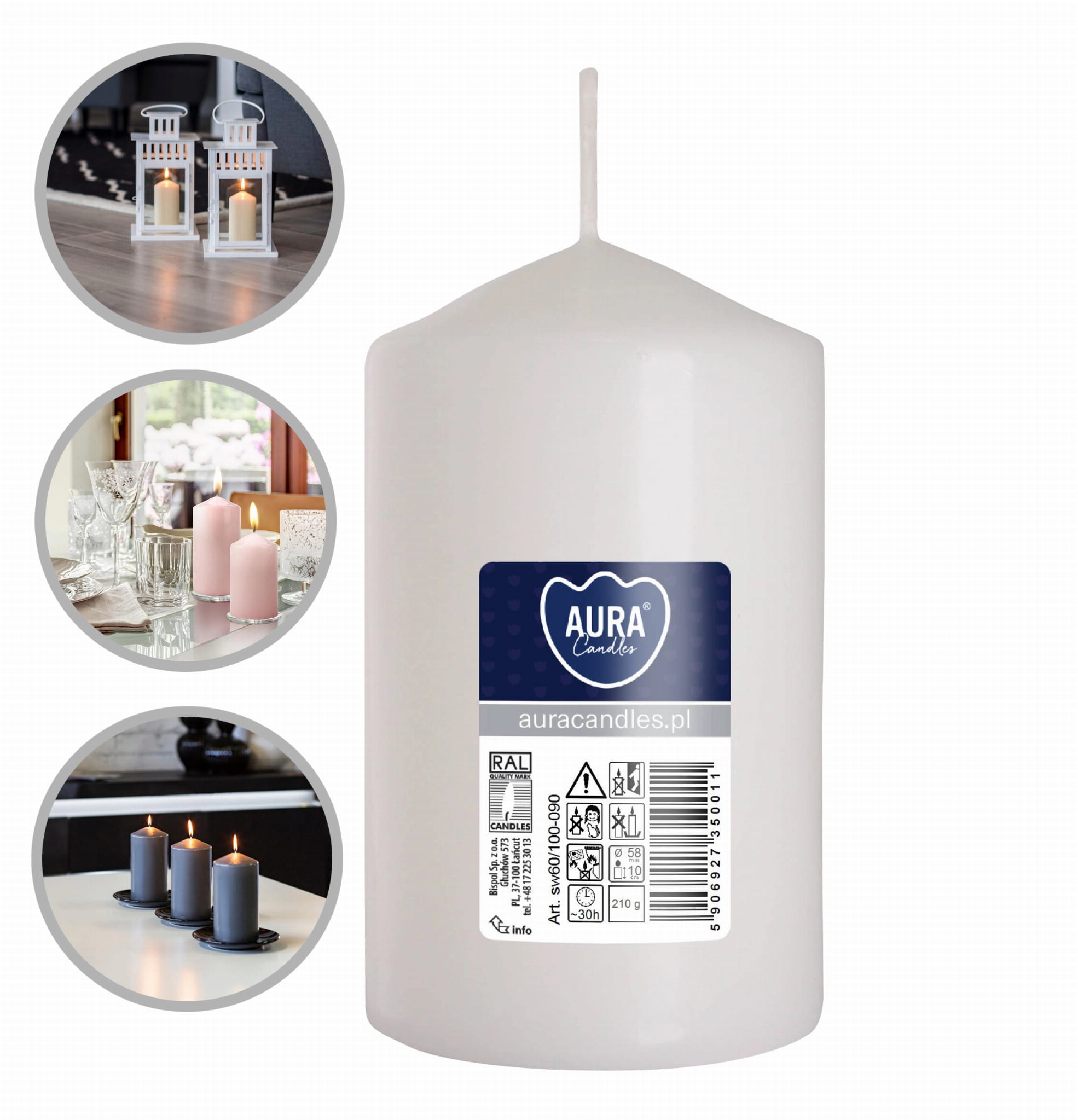 ⭐AURA Świeca Walec Biała 30h sw60/100-090⭐