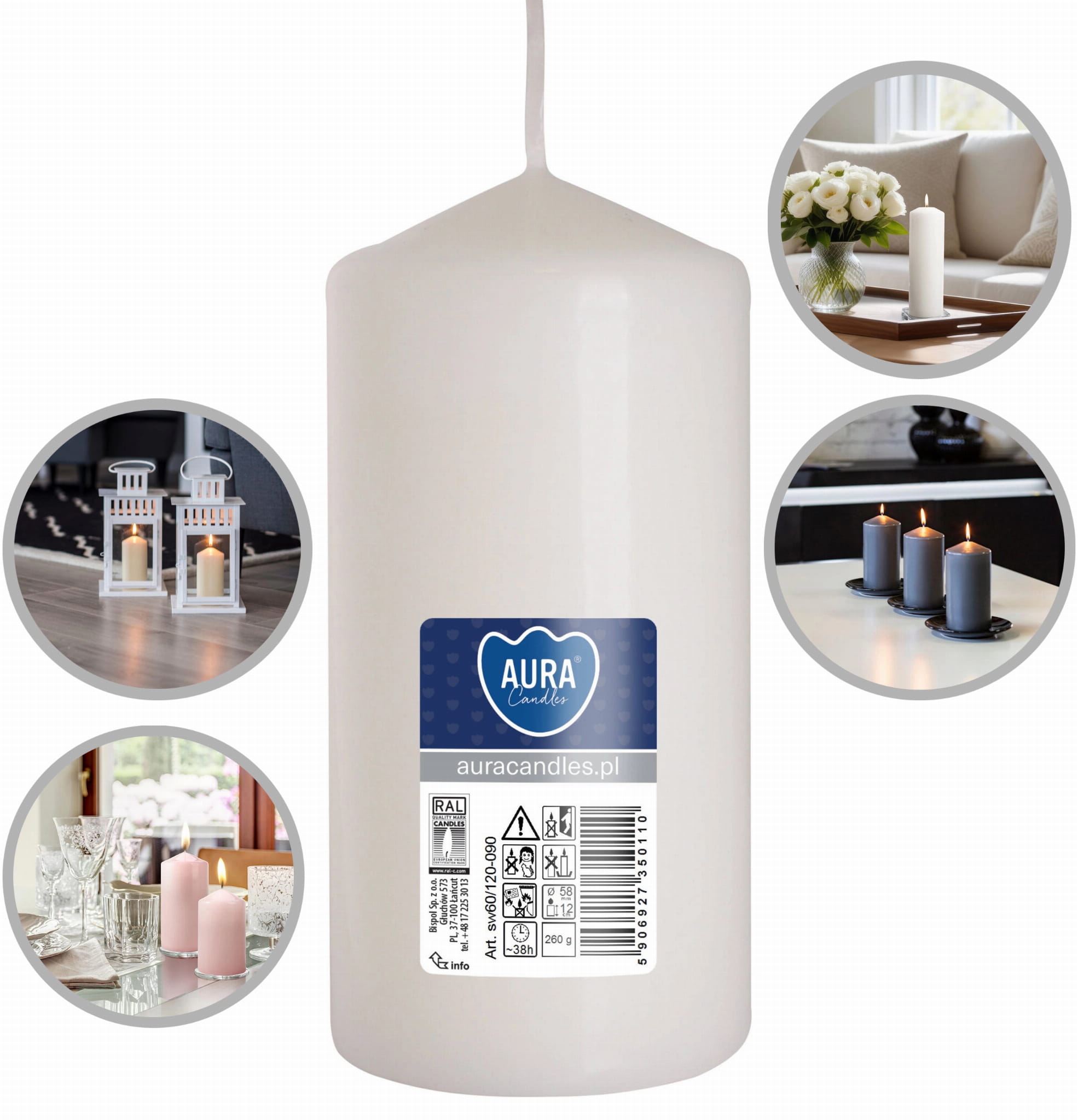 | Model | AURA Świeca Walec Biała 38h sw60/120-090 |