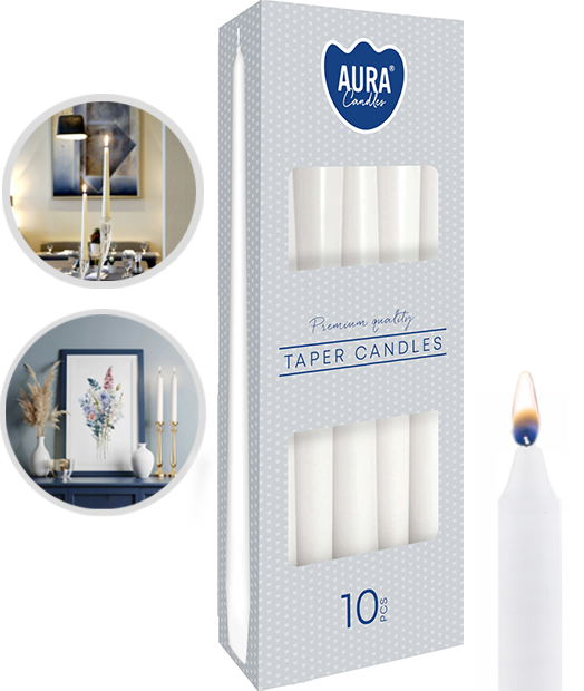 | Model | AURA Świece Stołowe Stożkowe Białe 7h 10 szt. s30-090 |