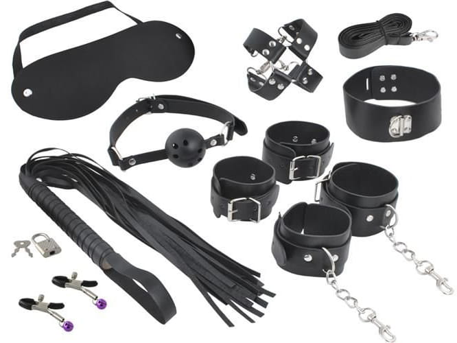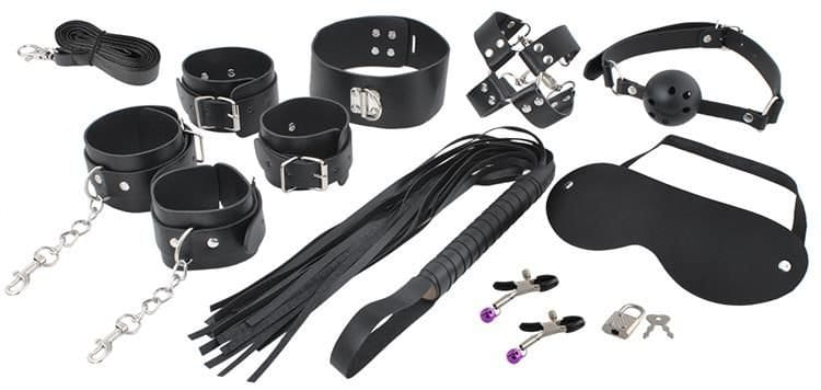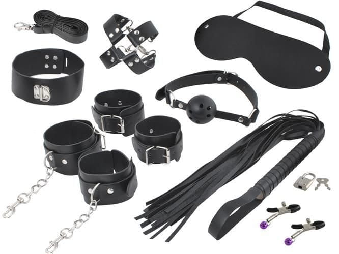 ✅Aż 13 elementów w zestawie: kajdanki, smycz, pejcz, zaciski i wiele innych