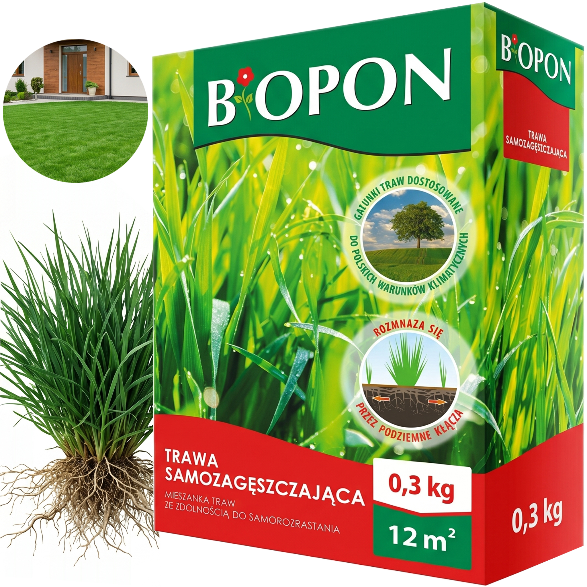 ➡️ 1 opakowanie BOPON – otrzymujesz gotową mieszankę nasion traw.
