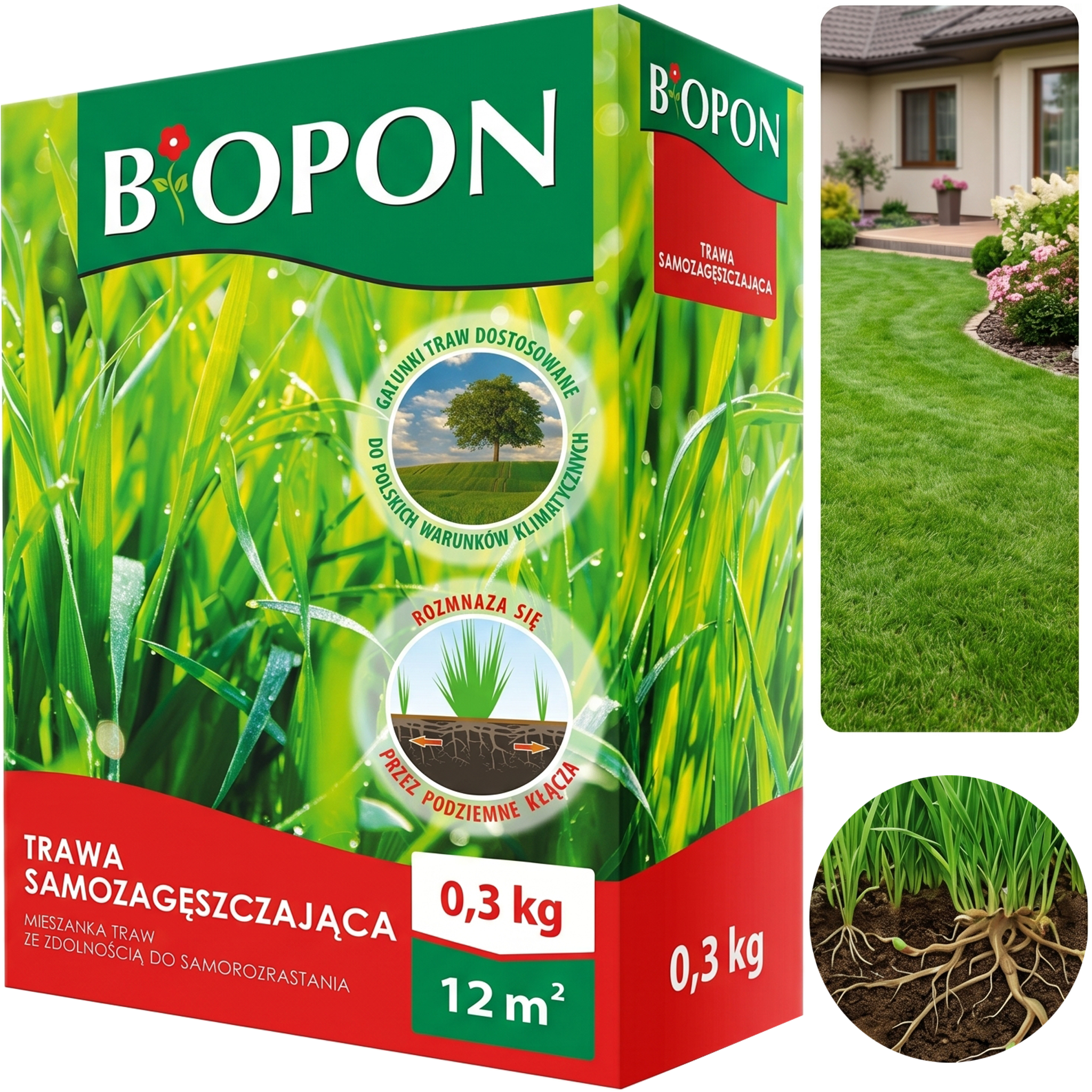 ✅ Trawa samozagęszczająca BOPON – wspiera tworzenie zwartej i estetycznej murawy.