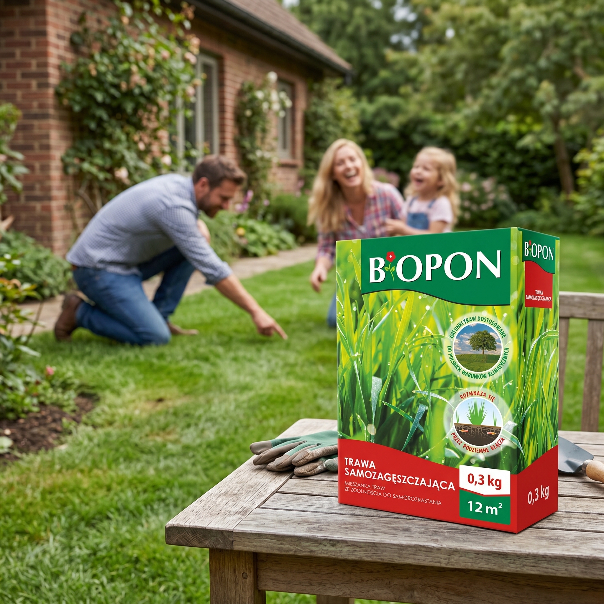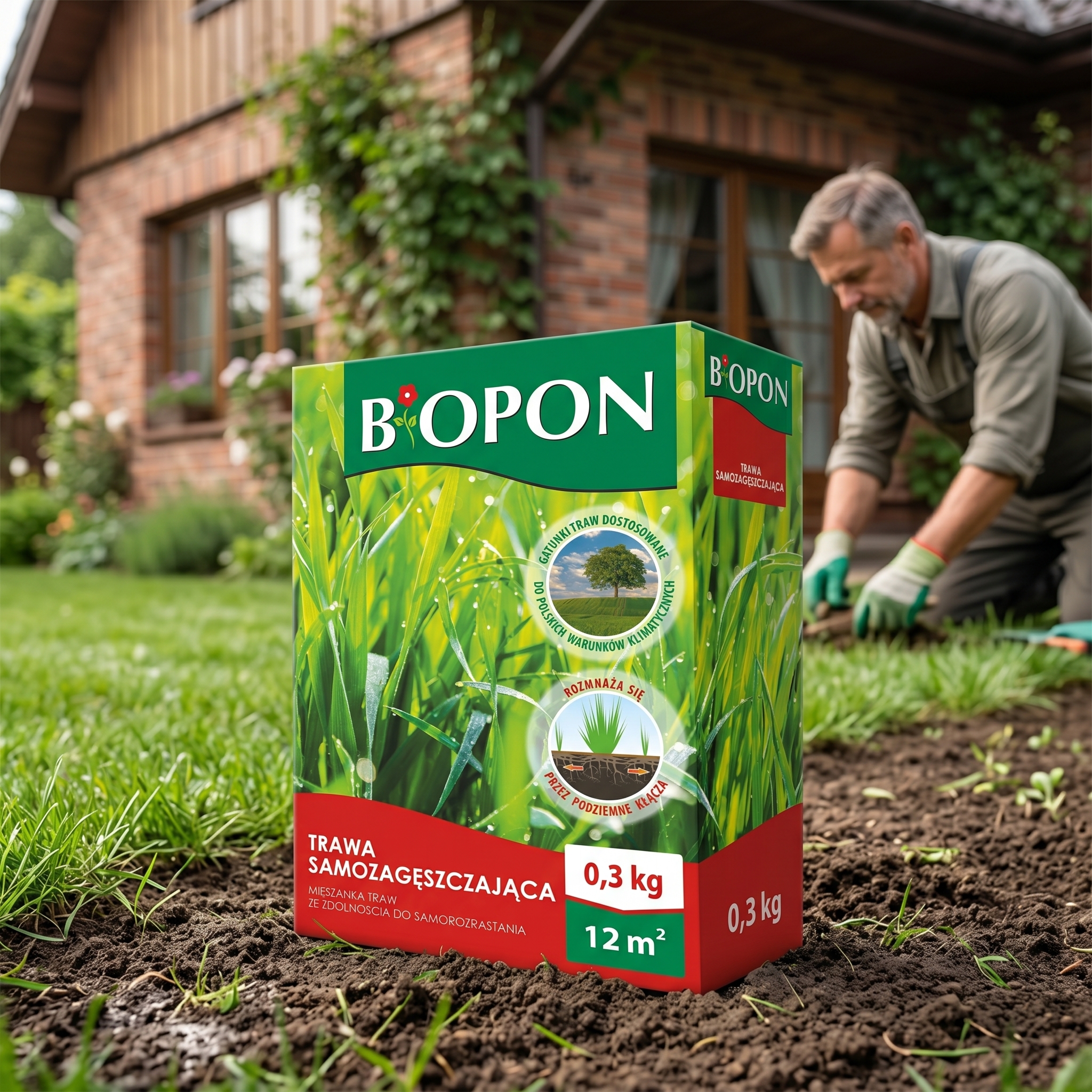 ➡️ Trawa samozagęszczająca 0,3 kg – ilość dopasowana do powierzchni do 12 m².