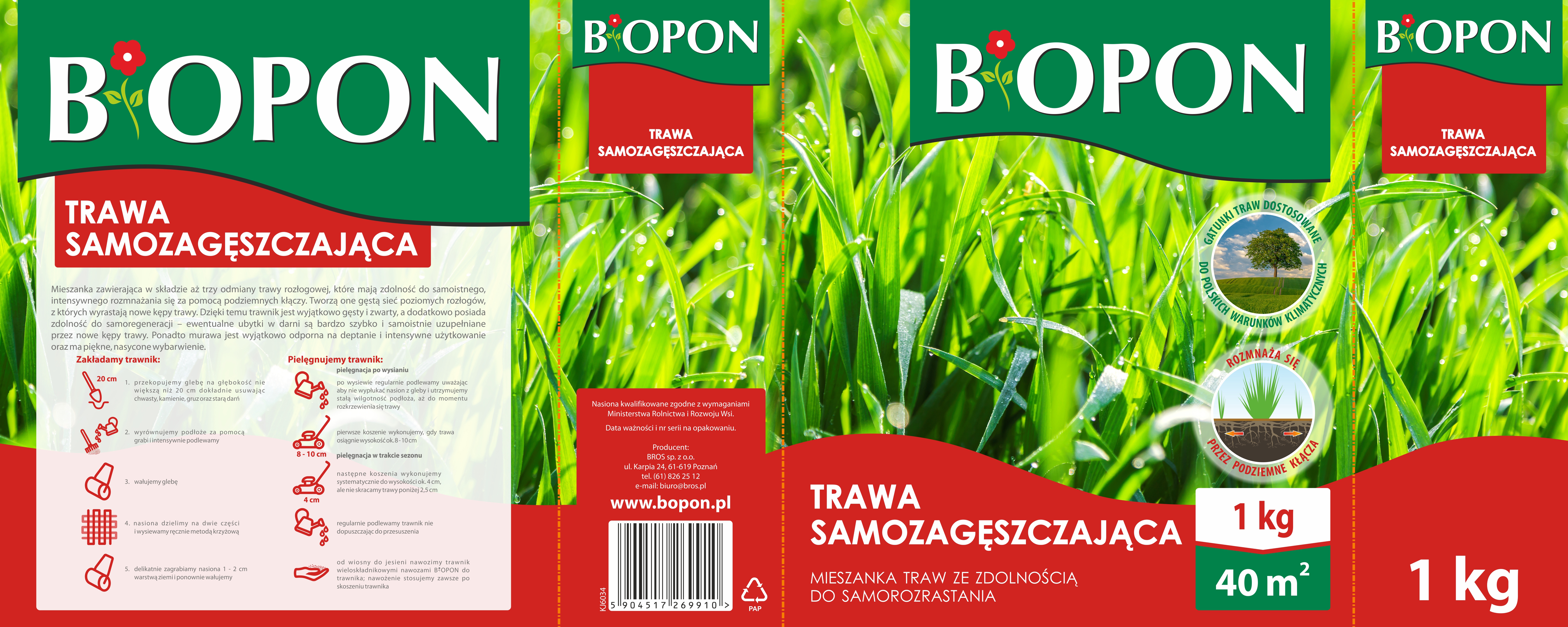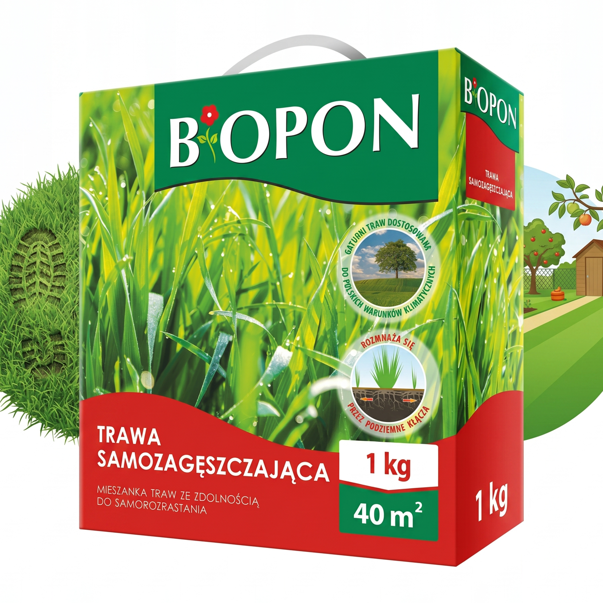 ✅ BOPON Trawa Samozagęszczająca 40 m² 1kg to praktyczna mieszanka nasion traw do zakładania, zagęszczania i regeneracji trawnika.