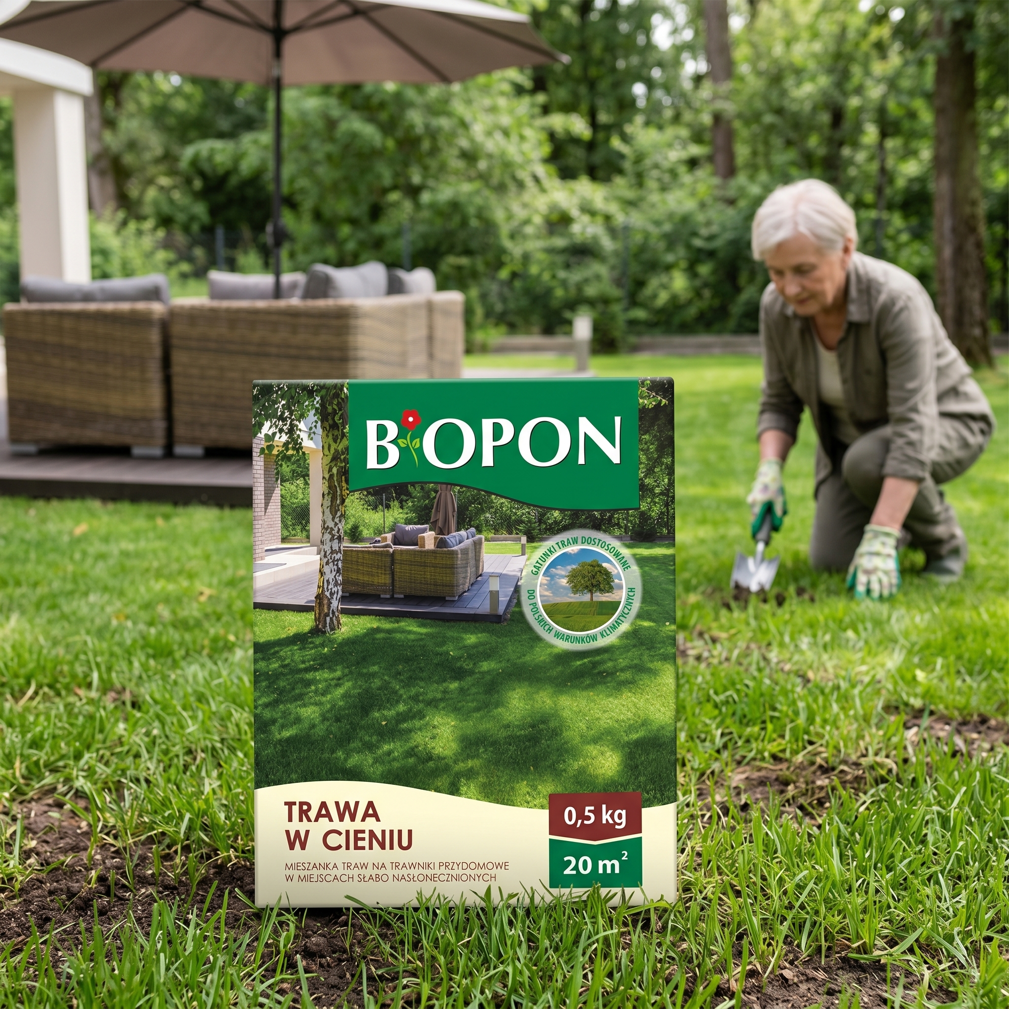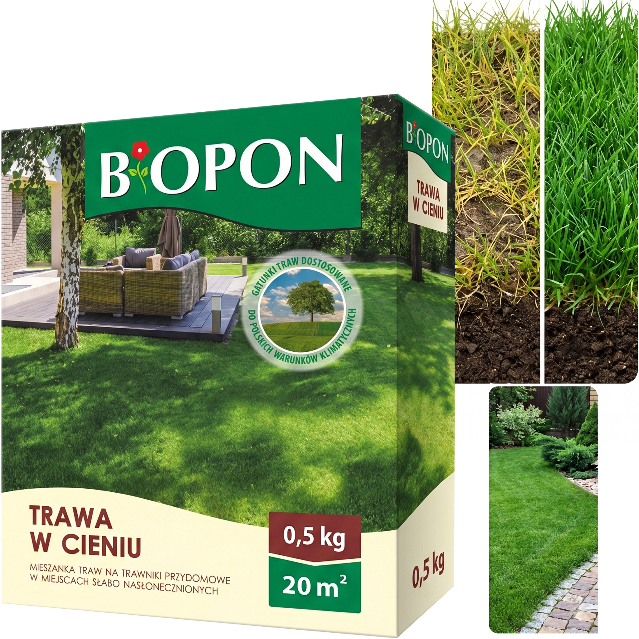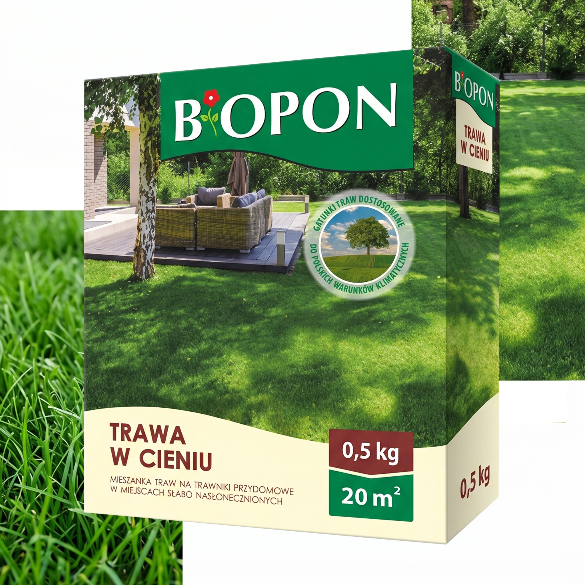 ✅ BOPON Trawa w cieniu 0,5 kg – praktyczna mieszanka do miejsc słabo nasłonecznionych.