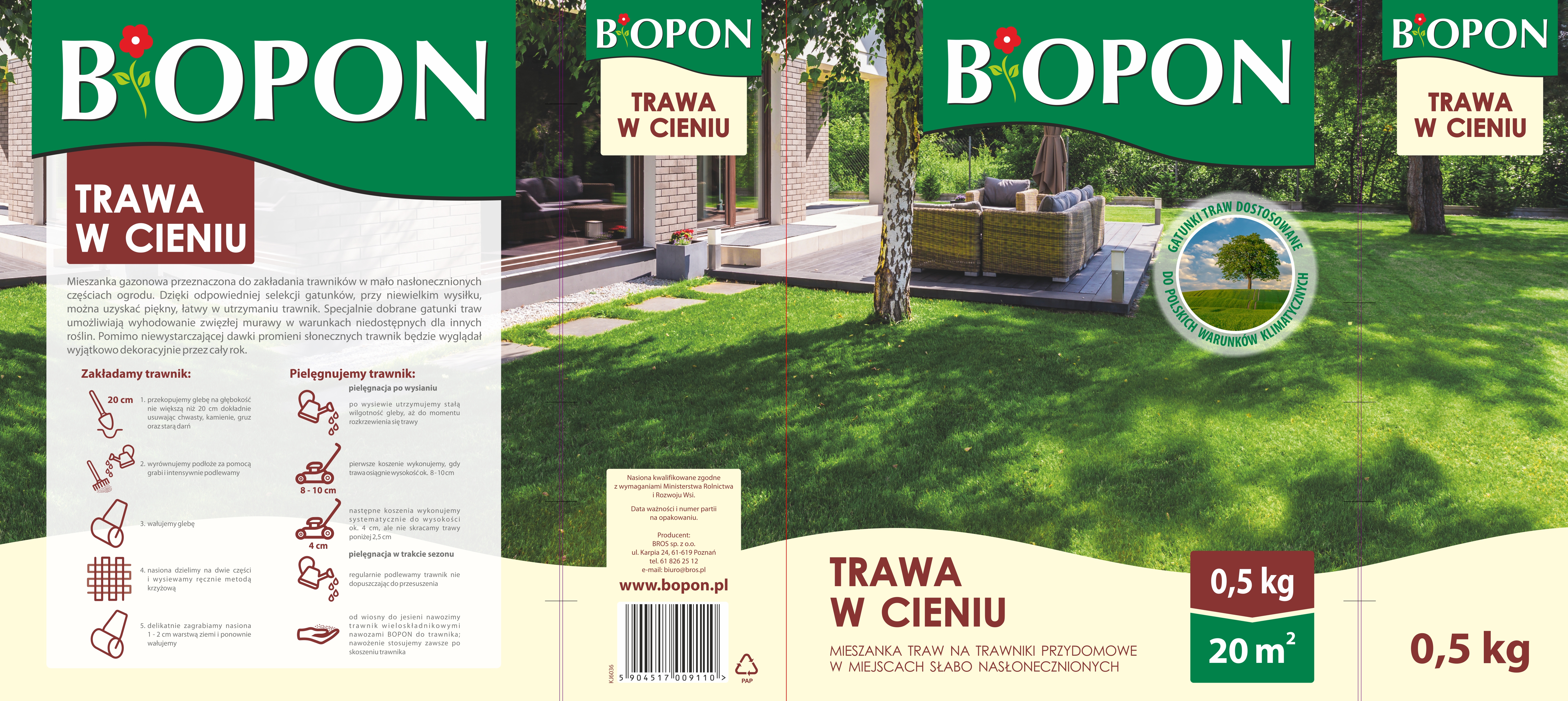 ➡️ 1 opakowanie nasion – otrzymujesz BOPON Trawa w cieniu w opakowaniu 0,5 kg.