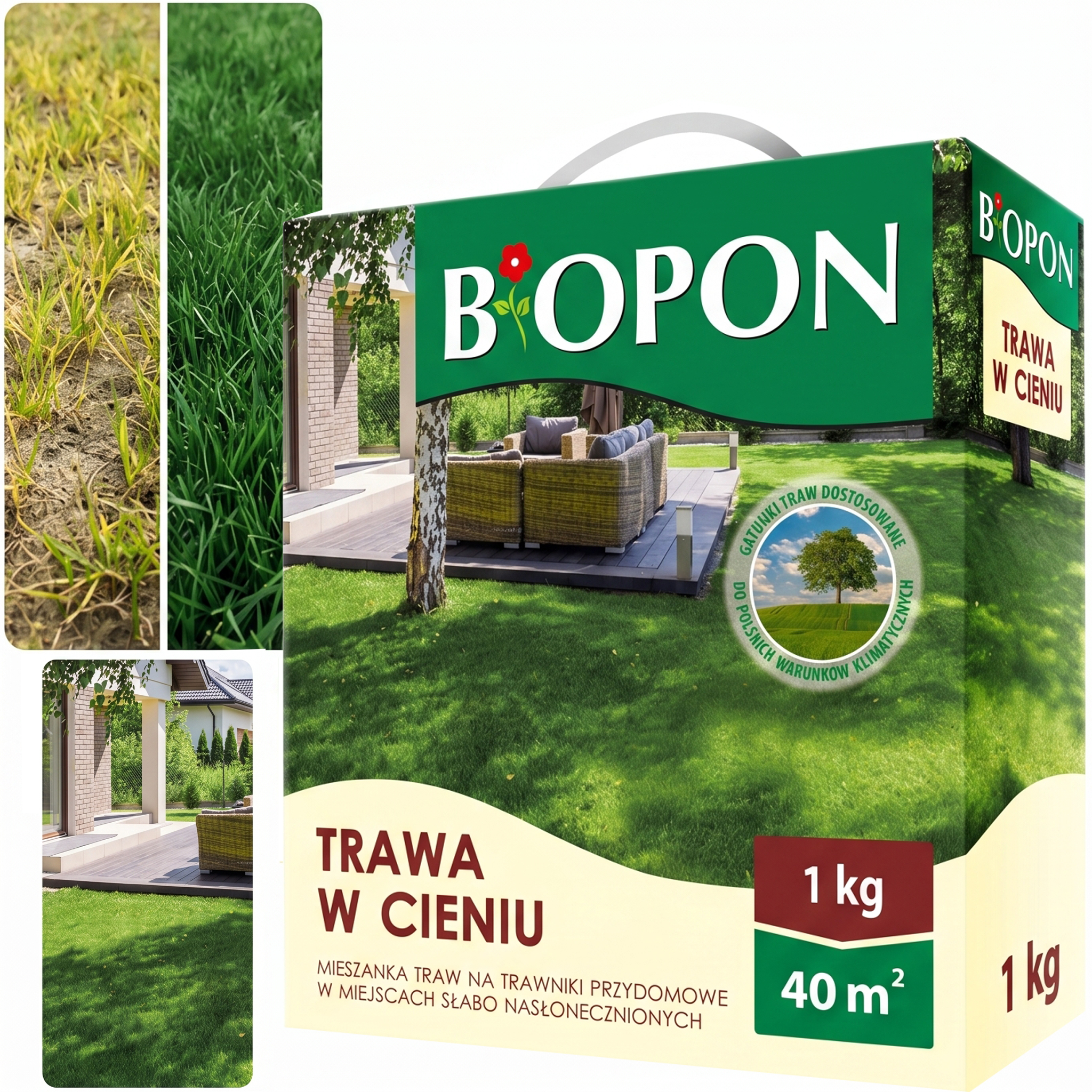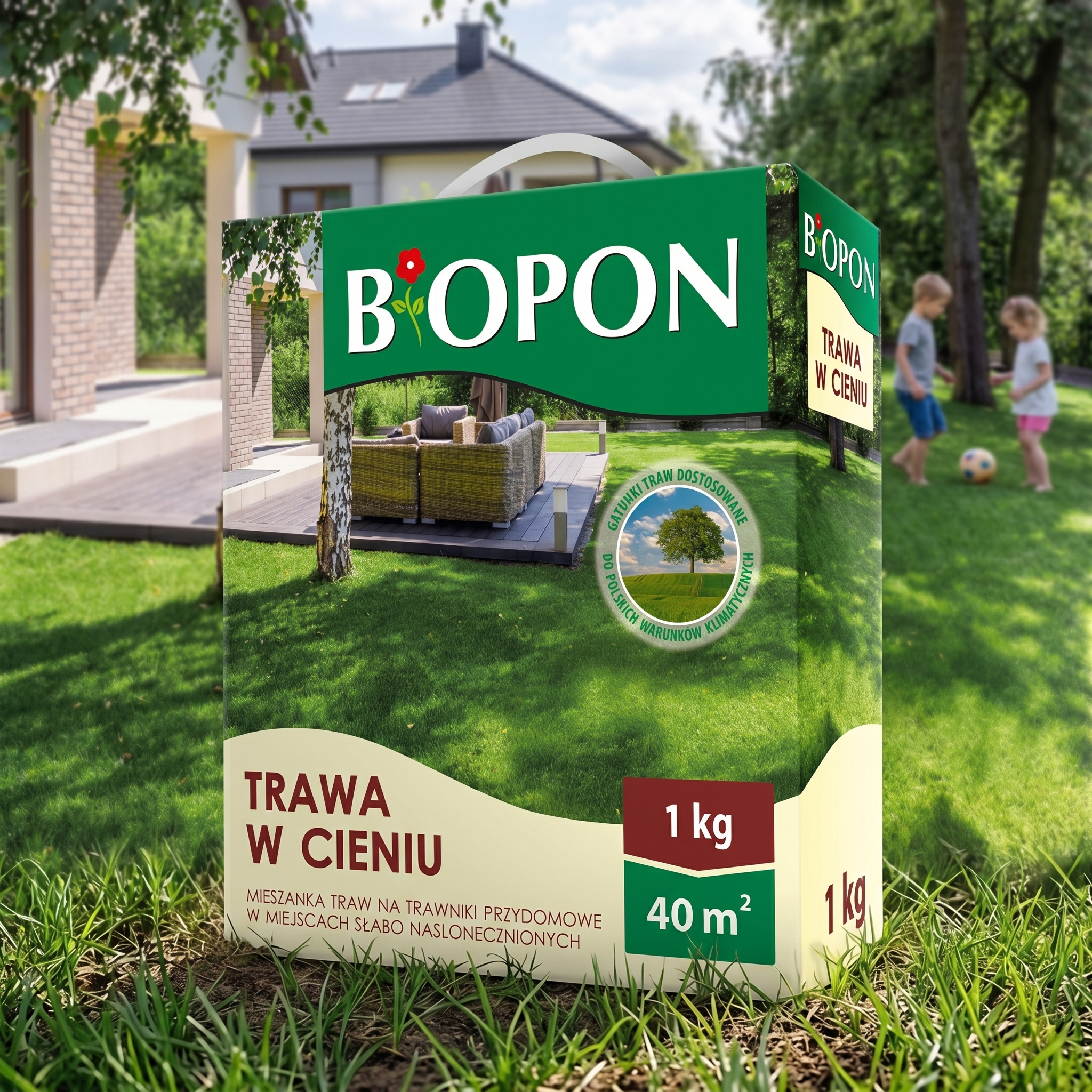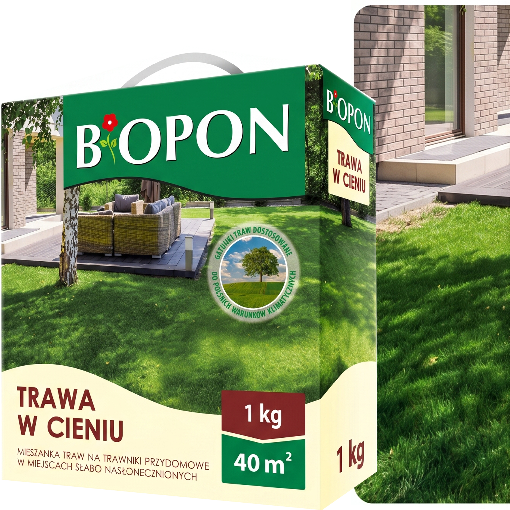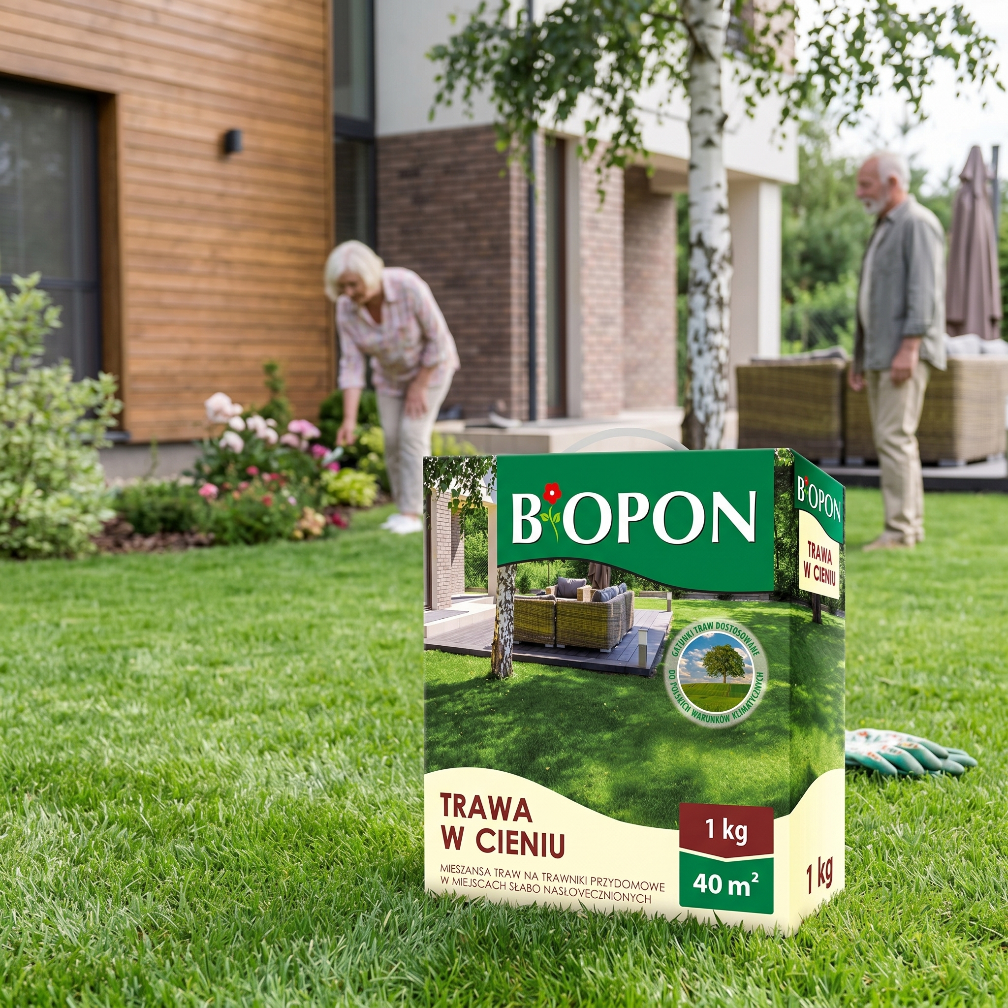 ✅ BOPON Trawa w cieniu 1kg – praktyczna mieszanka do miejsc słabo nasłonecznionych.