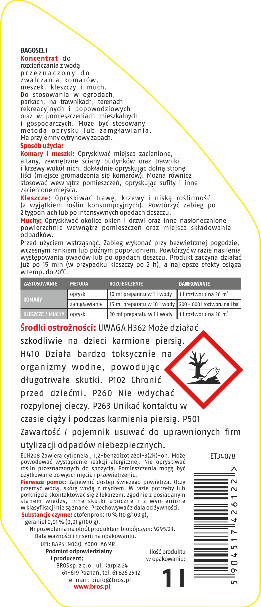 | Model | BROS - Bagosel 100EC 1l - preparat do oprysku ogrodu przeciw komarom i kleszczom |