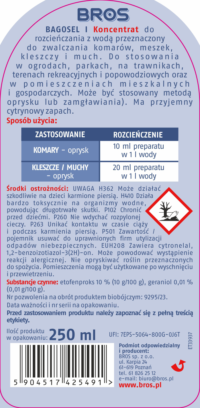 | Model | BROS - Bagosel 100EC 250ml - preparat do oprysku ogrodu przeciw komarom i kleszczom |