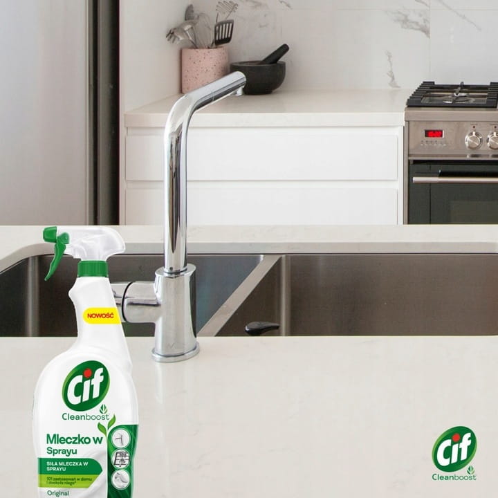 ✅CIF Cleanboost Original to wszechstronny środek czyszczący w formie mleczka w sprayu, który zapewnia skuteczne czyszczenie na różnorodnych powierzchniach w domu i wokół niego.