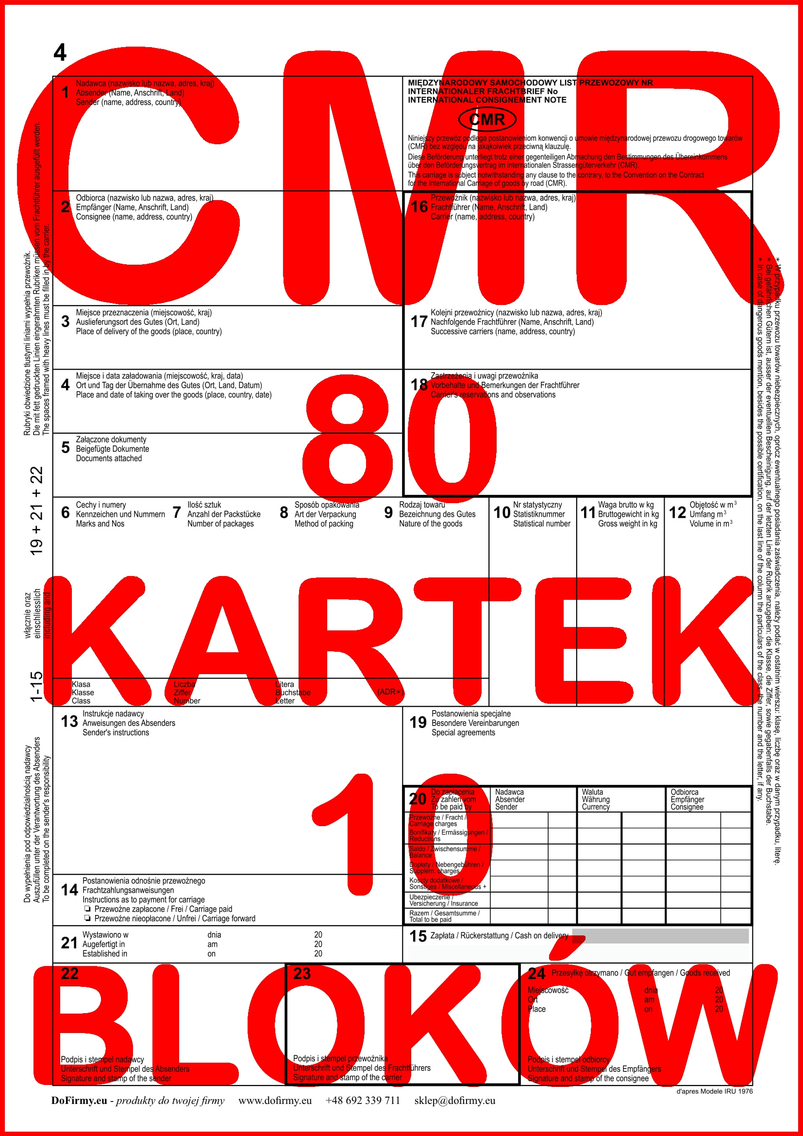 CMR Międzynarodowy List Przewozowy 80 kartek