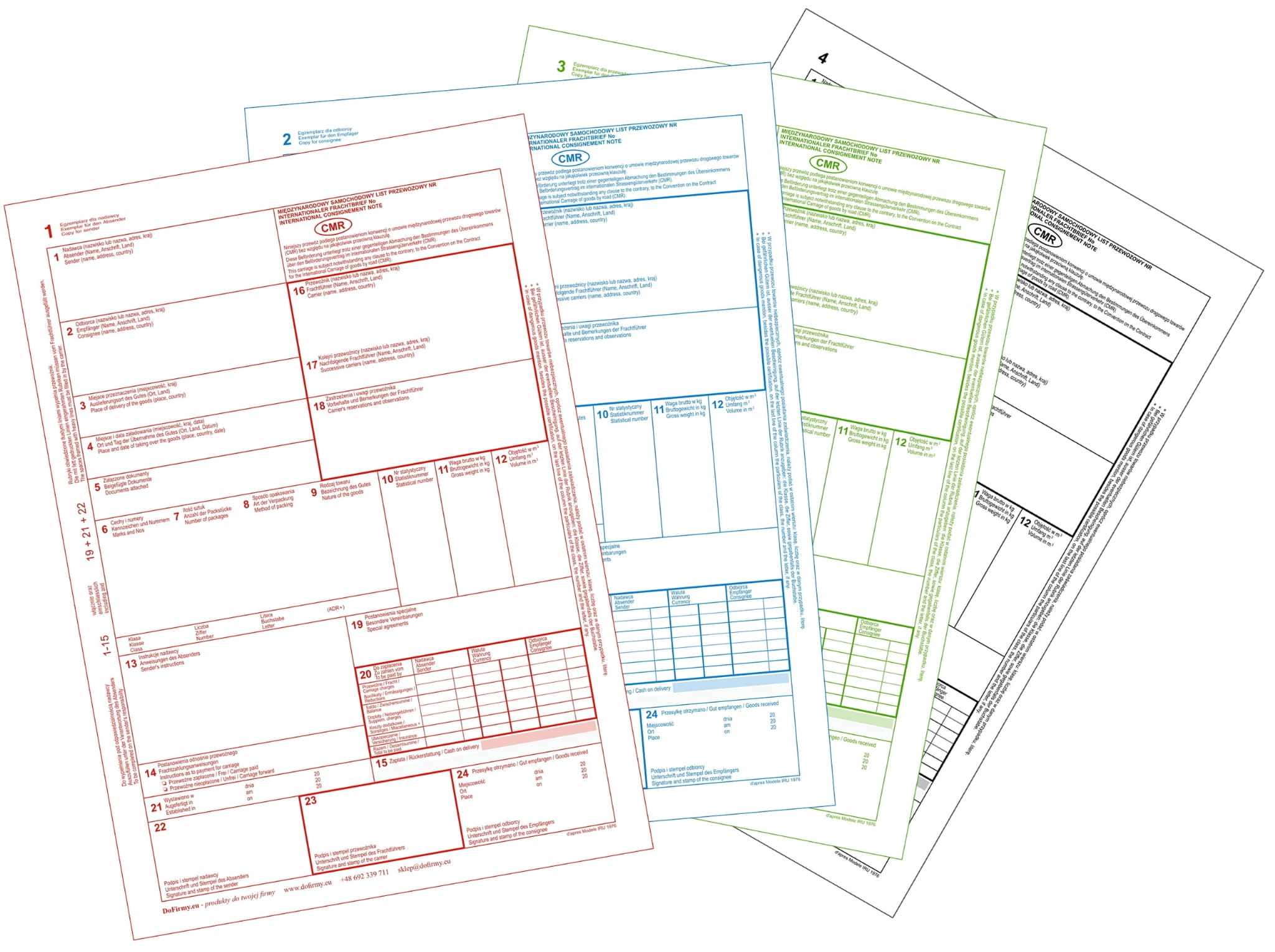 Międzynarodowy List Przewozowy CMR składa się z bloku formularzy 4 lub 5-kartkowych tłumaczonych w trzech językach: