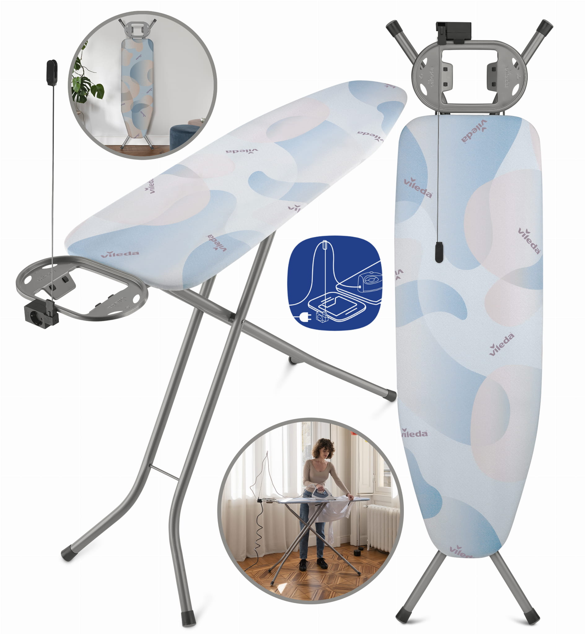➡️Dodatkowo deska jest wyposażona w uchwyt na kabel oraz zintegrowane gniazdo z 2-metrowym kablem, zapewniając komfort i wygodę podczas prasowania.