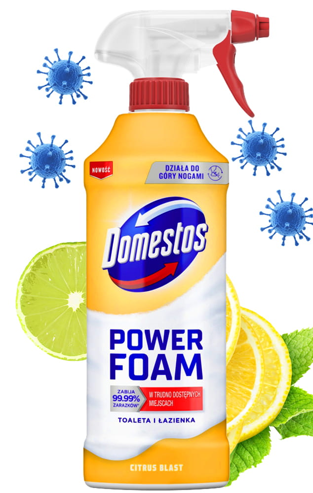 ✅Domestos Power Foam nie tylko usuwa zabrudzenia, ale także niszczy wirusy, grzyby i inne drobnoustroje, gwarantując pełną higienę.