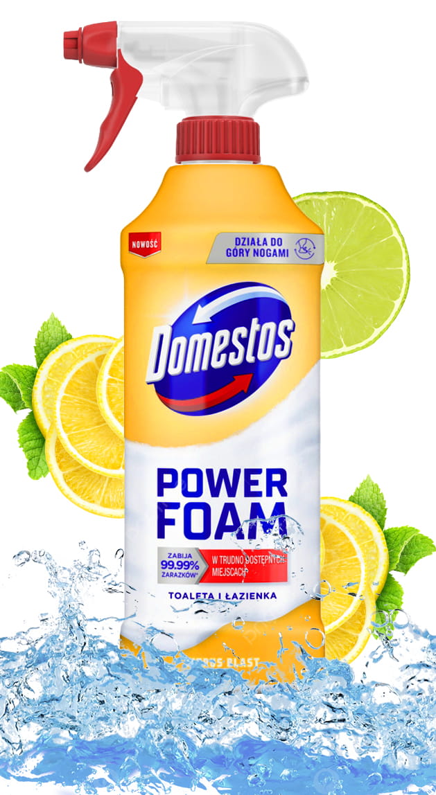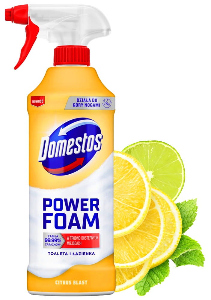 ✅Po każdym użyciu Domestos Power Foam pozostawia w łazience przyjemny, cytrusowy zapach, który potęguje uczucie świeżości i czystości.