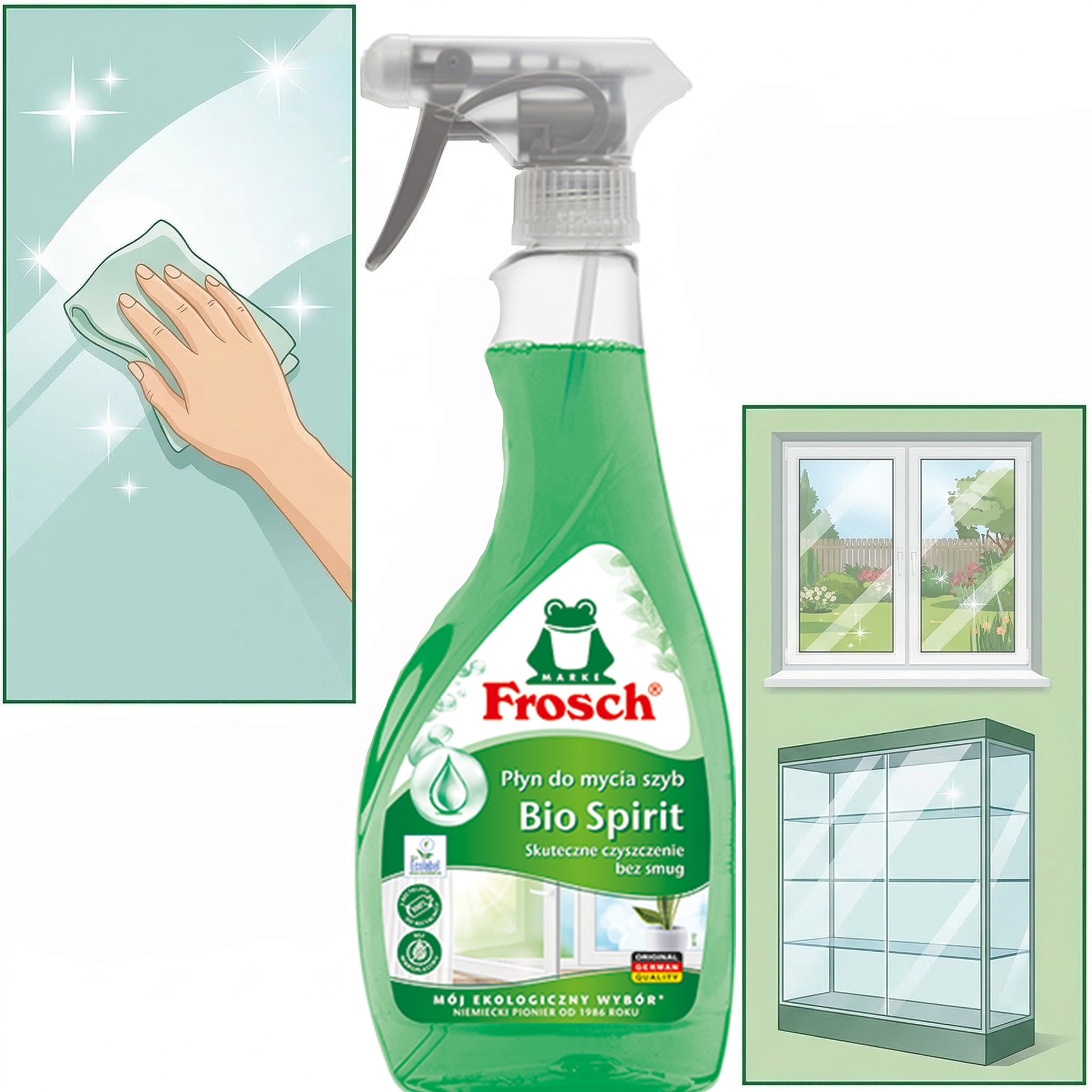 ✅ Frosch Płyn Do Mycia Szyb Bio Spirit 500 ml to praktyczne rozwiązanie do codziennego sprzątania, gdy liczy się skuteczne czyszczenie bez smug, szybki efekt i wygoda użycia.