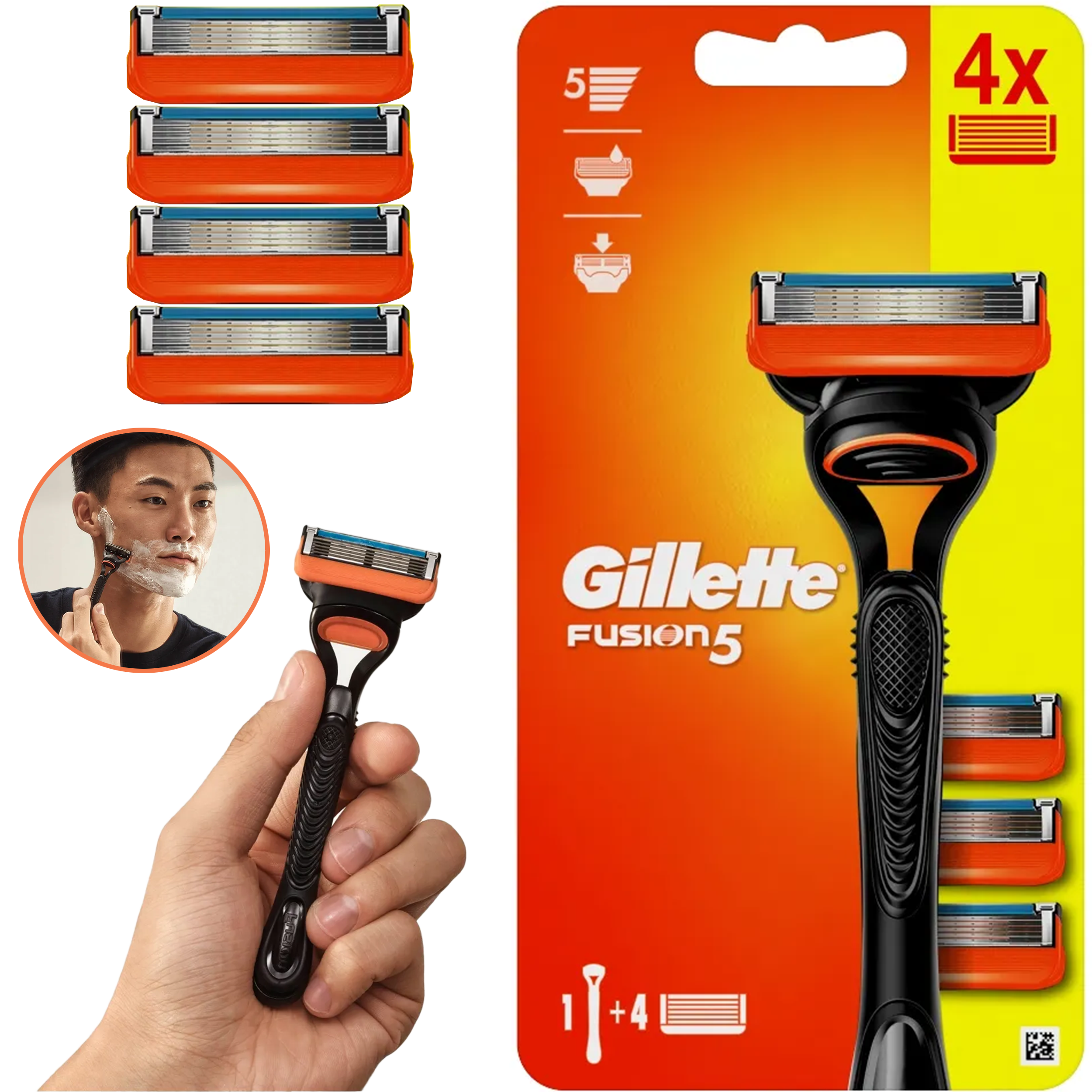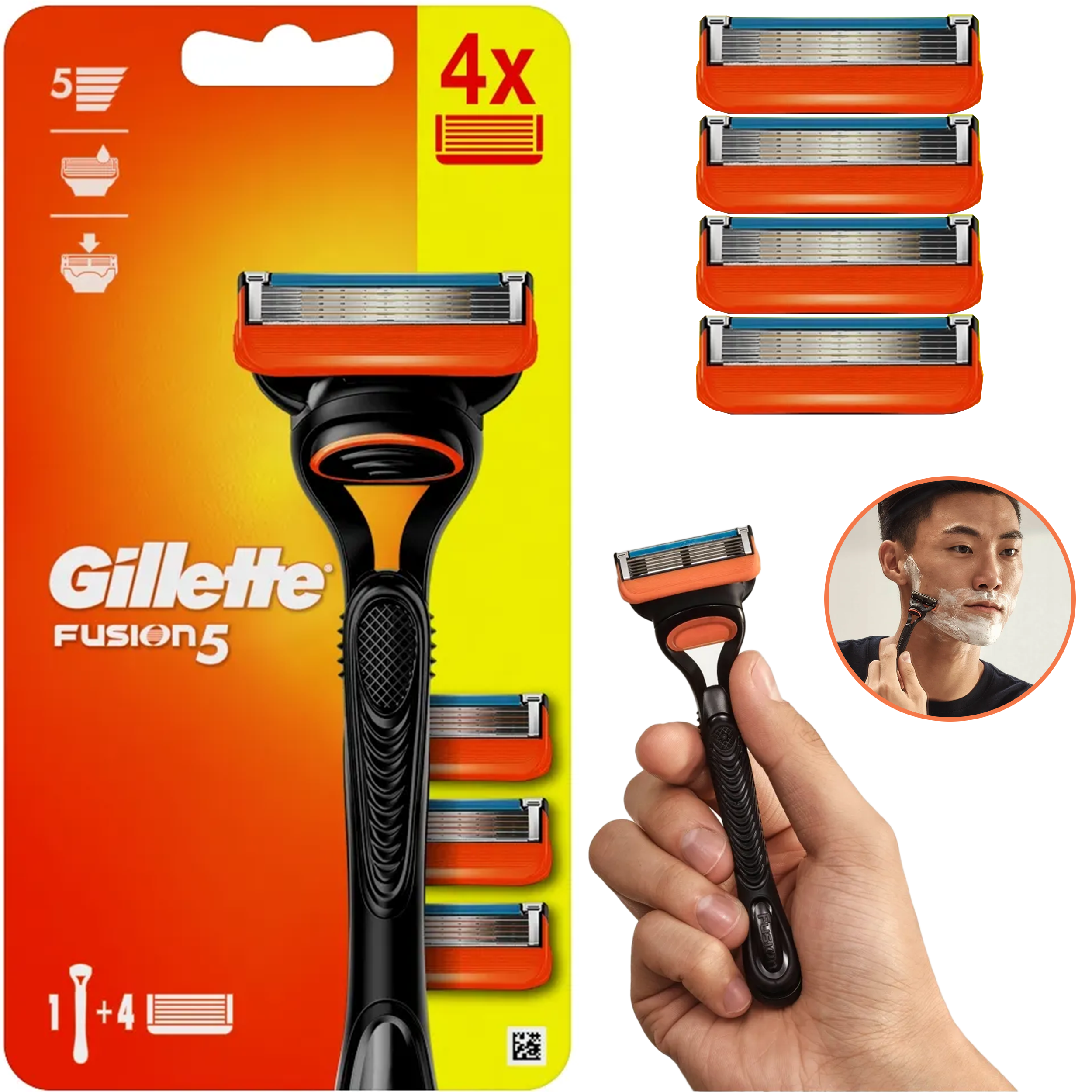⭐Gillette Fusion5 Maszynka Do Golenia Dla Mężczyzn Plus 4 Ostrza Wymienne⭐