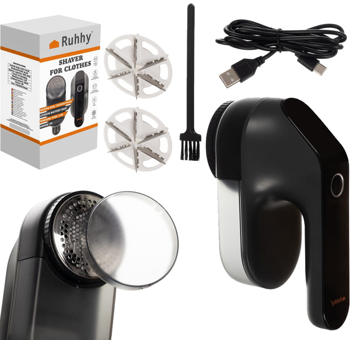 ➡️Oprócz samej golarki, w zestawie znajdziesz pojemnik na usunięte zmechacenia, 3 głowice z sześcioma ostrzami każda, obudowę z utwardzonej siatki, pokrywę zabezpieczającą, kabel USB Typ-C do ładowania oraz pędzelek do czyszczenia urządzenia.