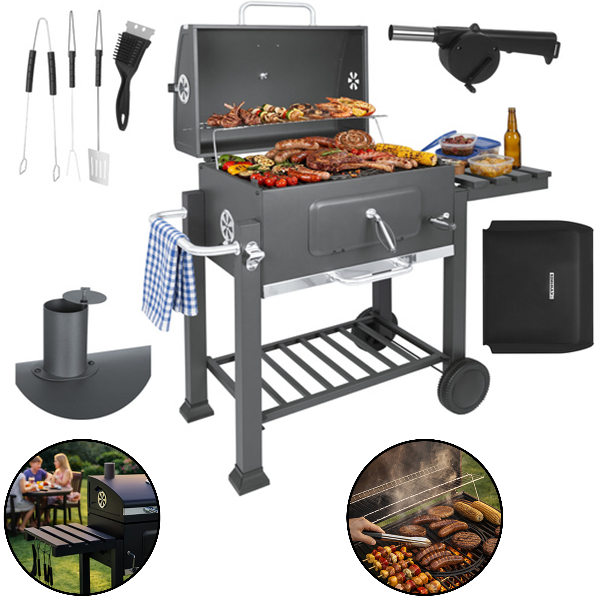 - ✅Ręczna dmuchawa pomaga szybciej rozniecić żar.