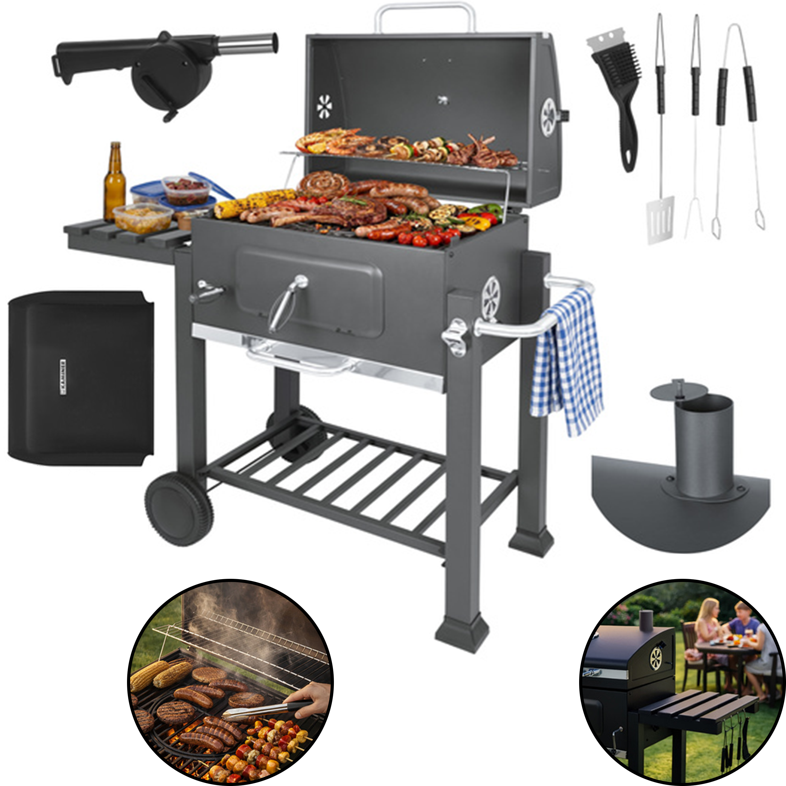 ➡️ Grill węglowy z pokrywą pozwala wygodnie przygotować potrawy w ogrodzie, na działce i na tarasie.