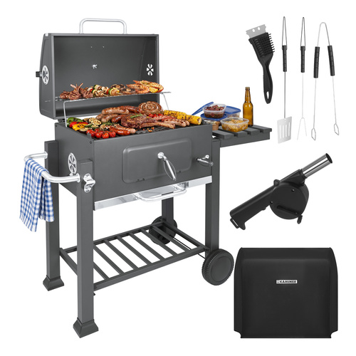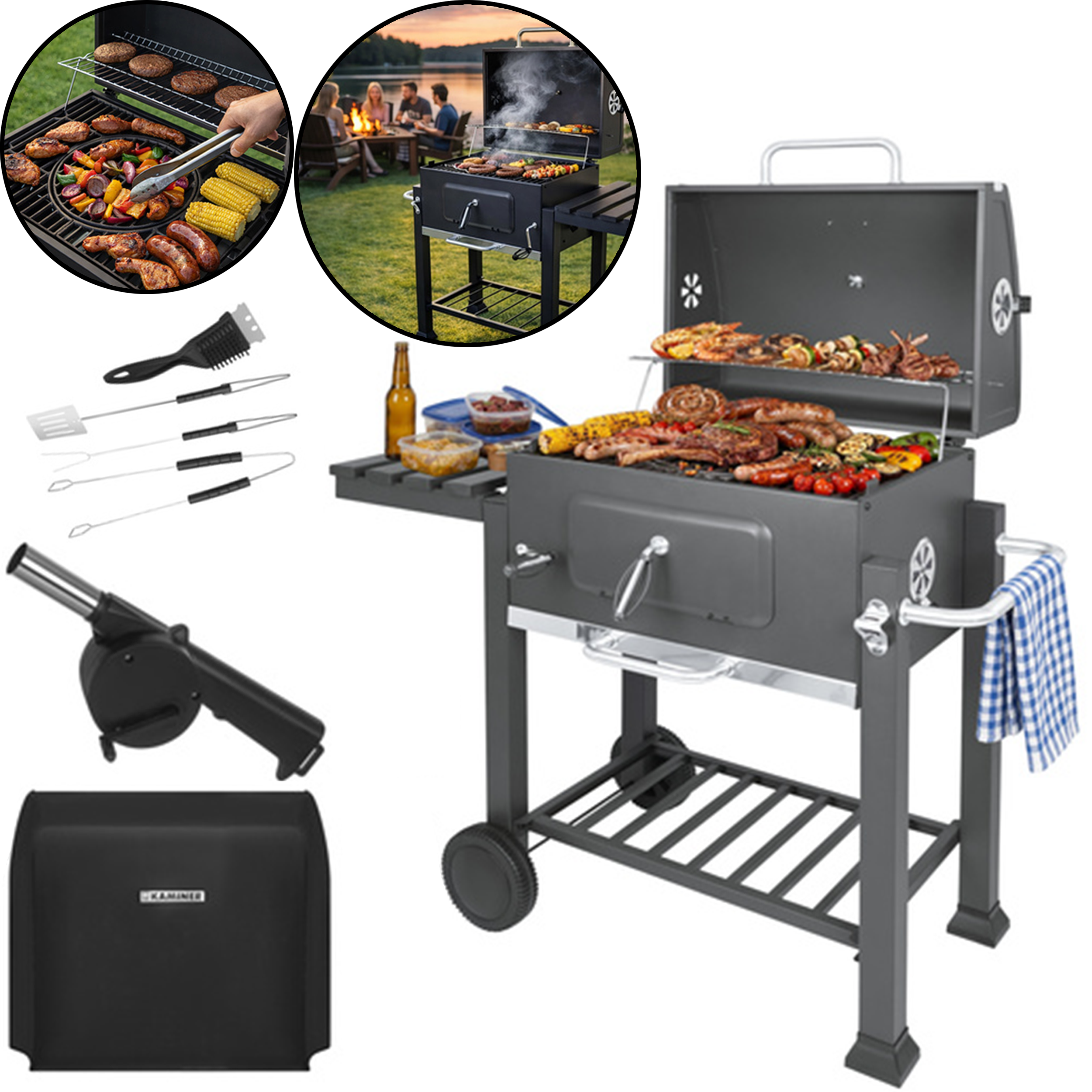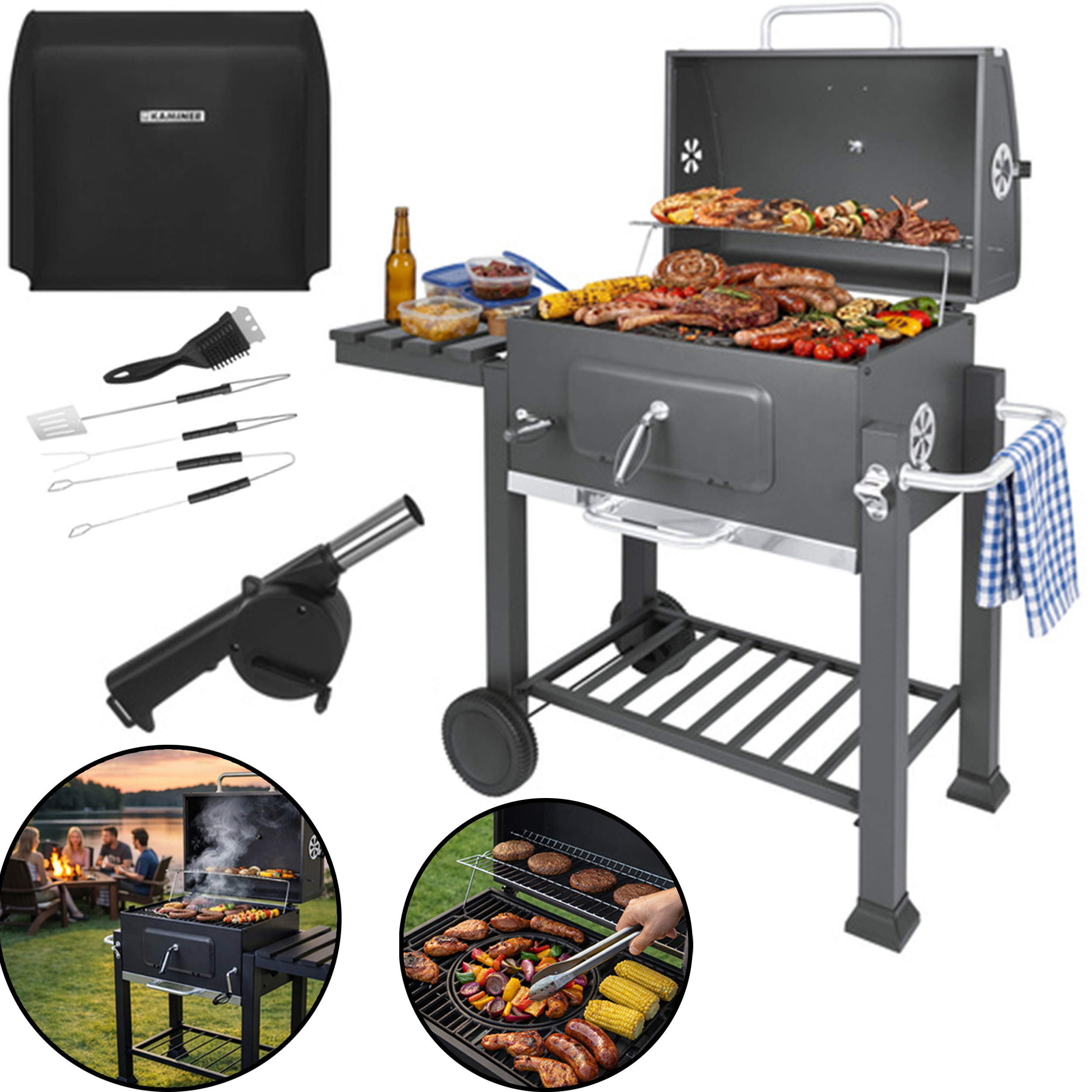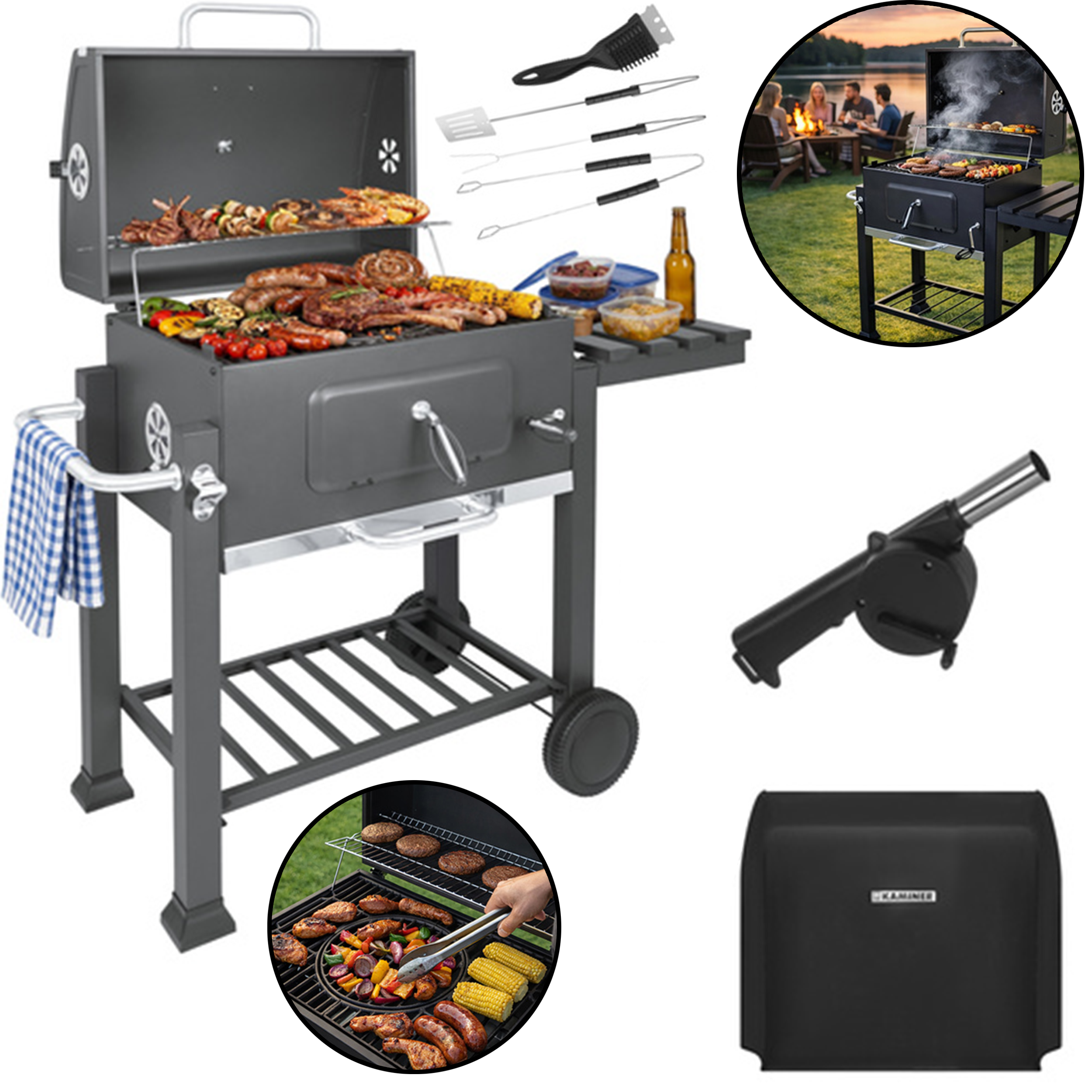 ➡️ Grill ogrodowy Kaminer 116x70x110 cm to solidny model węglowy z pokrywą.